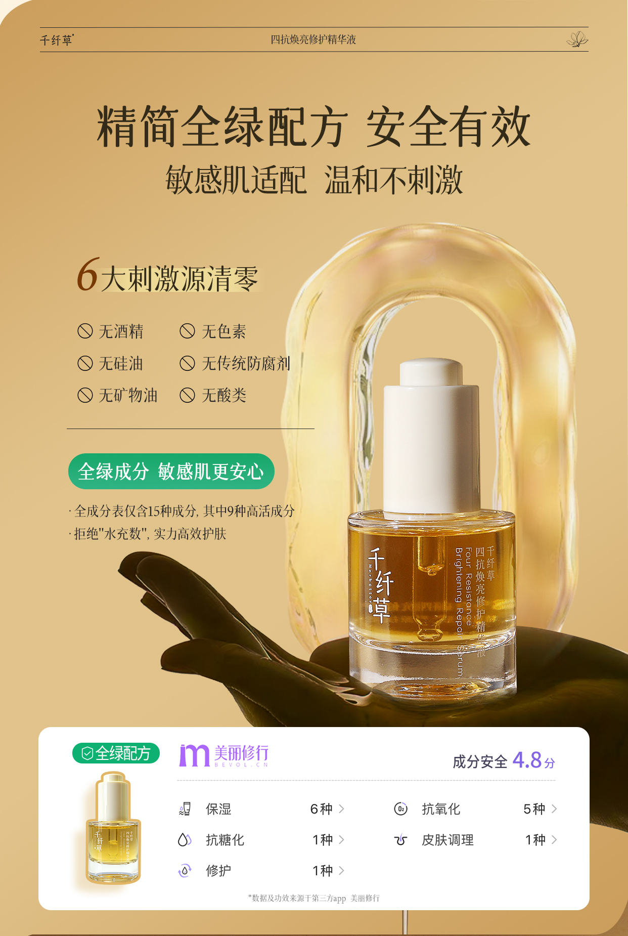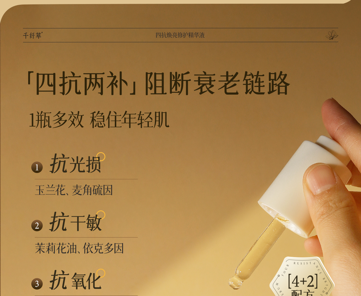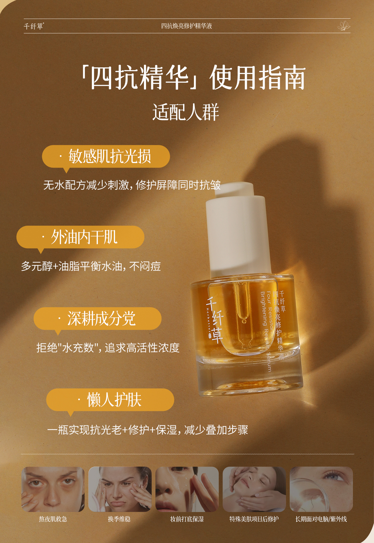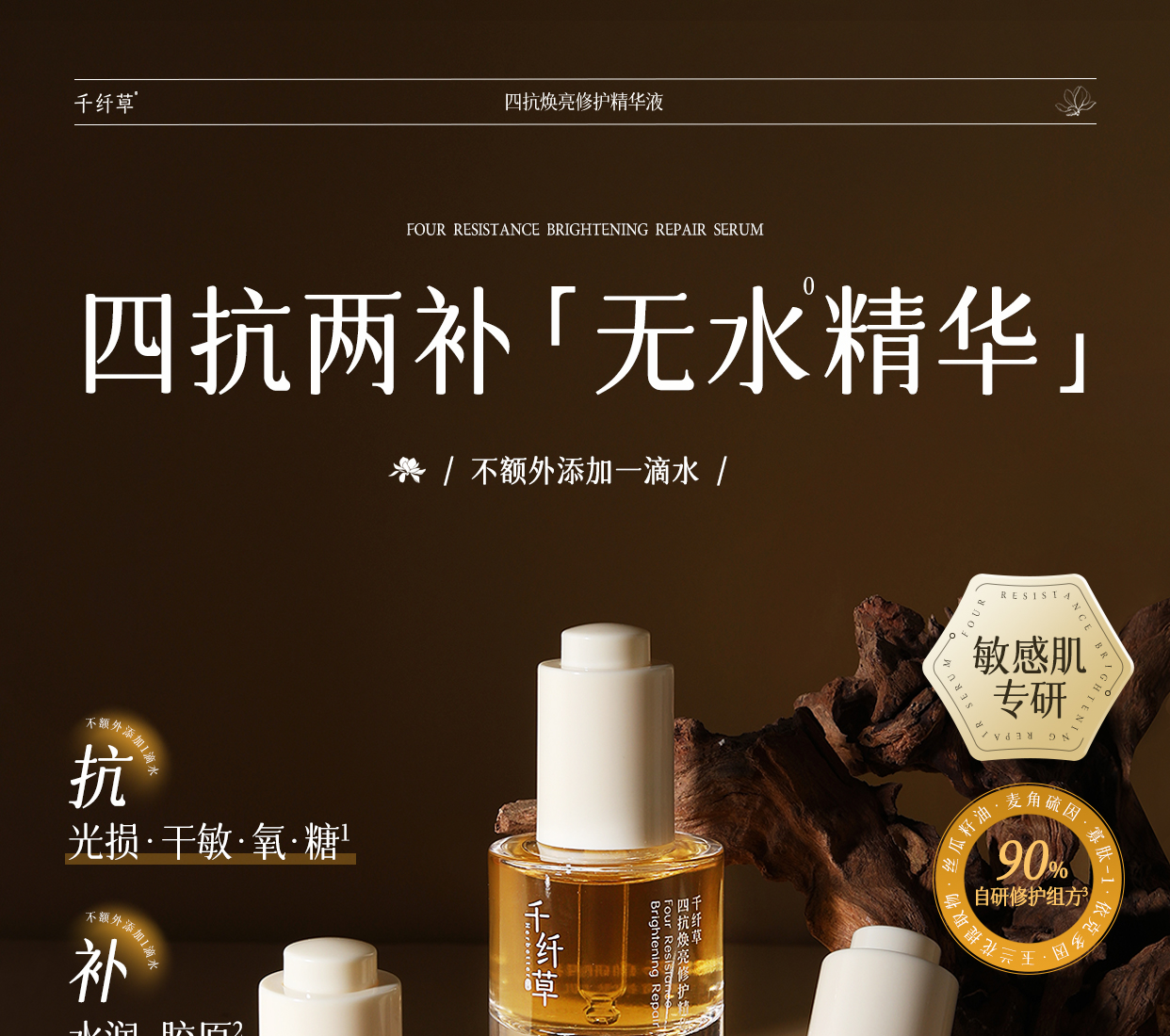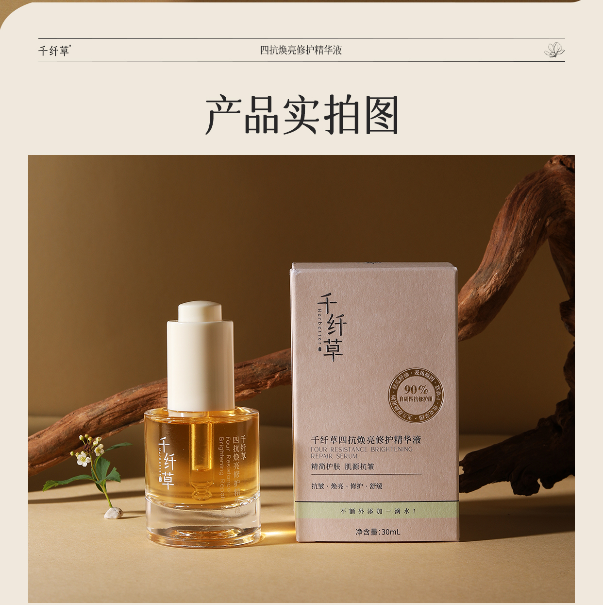 【2瓶118元】千纤草四抗焕亮修护精华液30ml(买就送小样试用装)