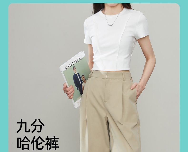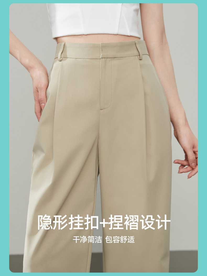【防水手熨理想裤】逸阳宽松显瘦九分镰刀直筒黑色休闲裤子5660