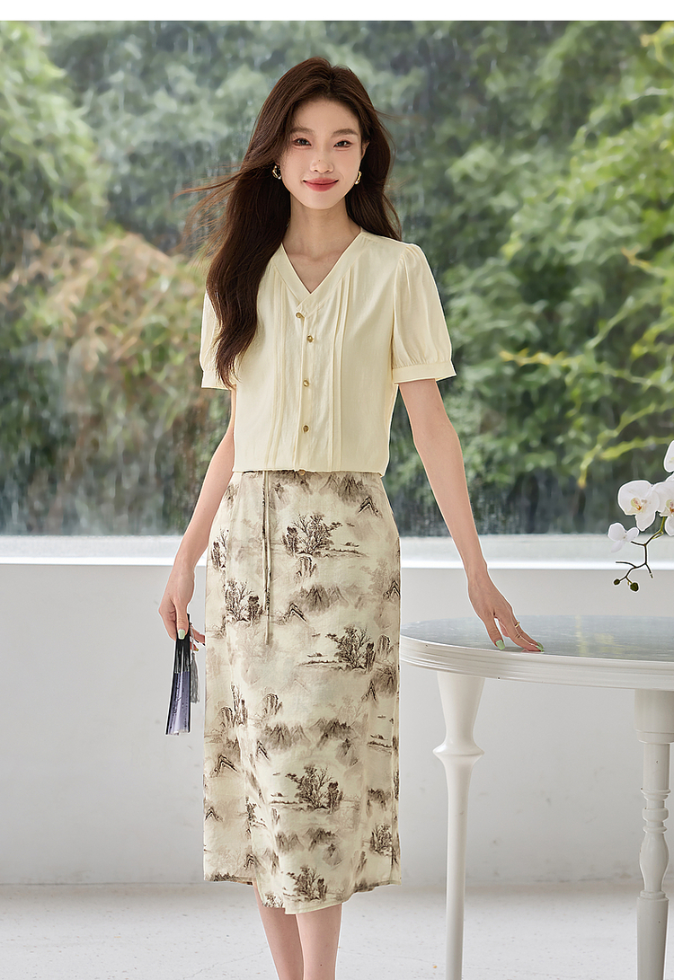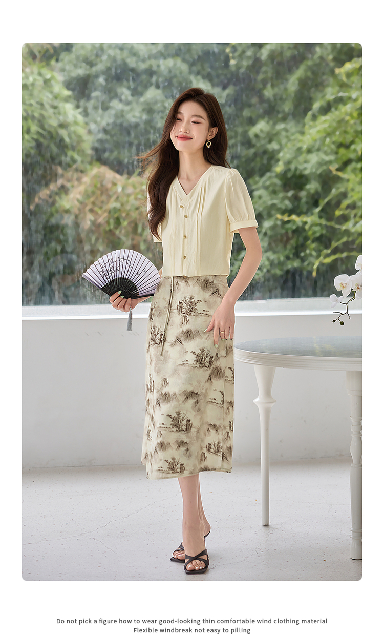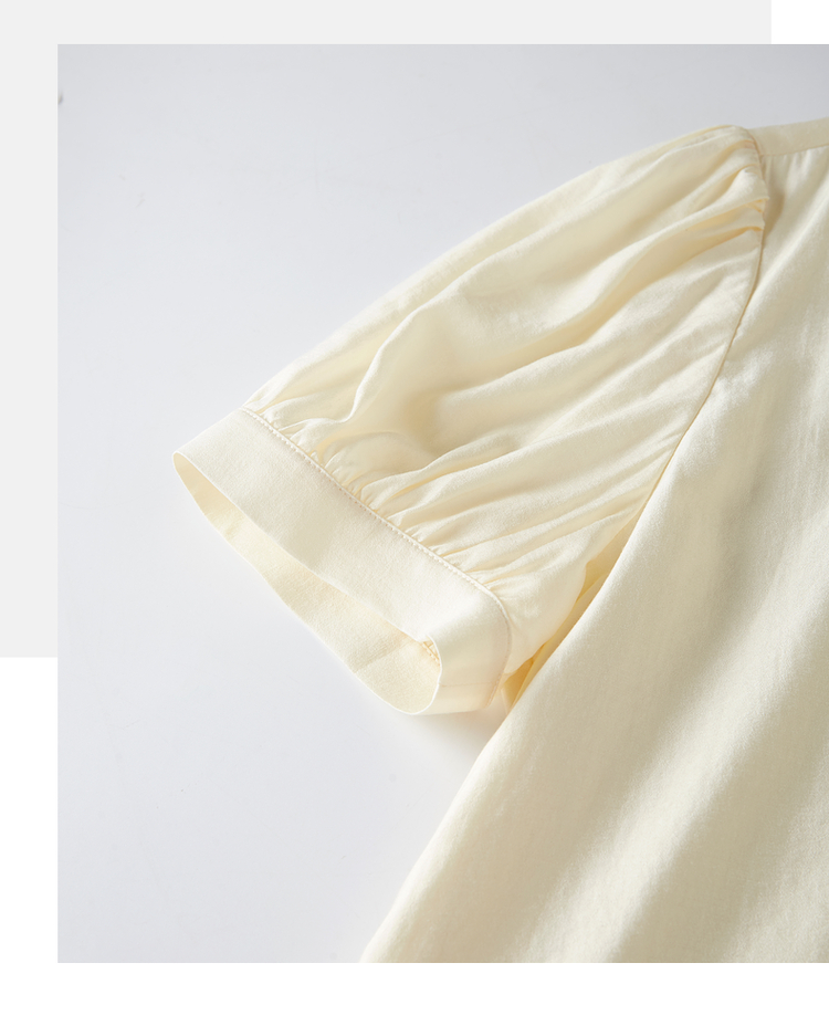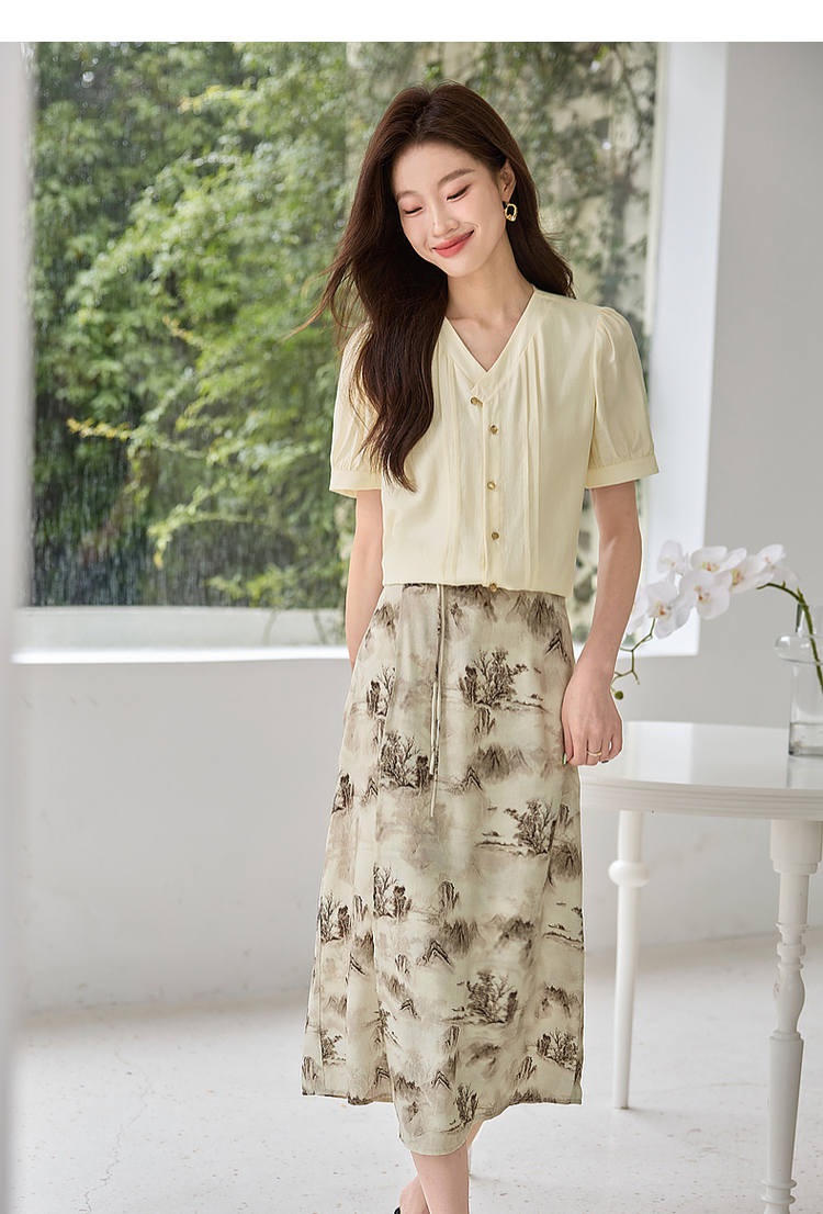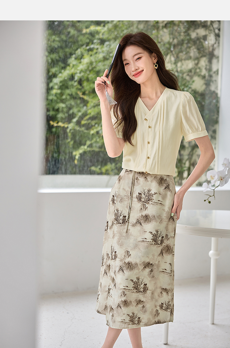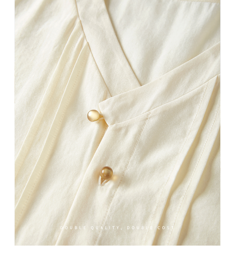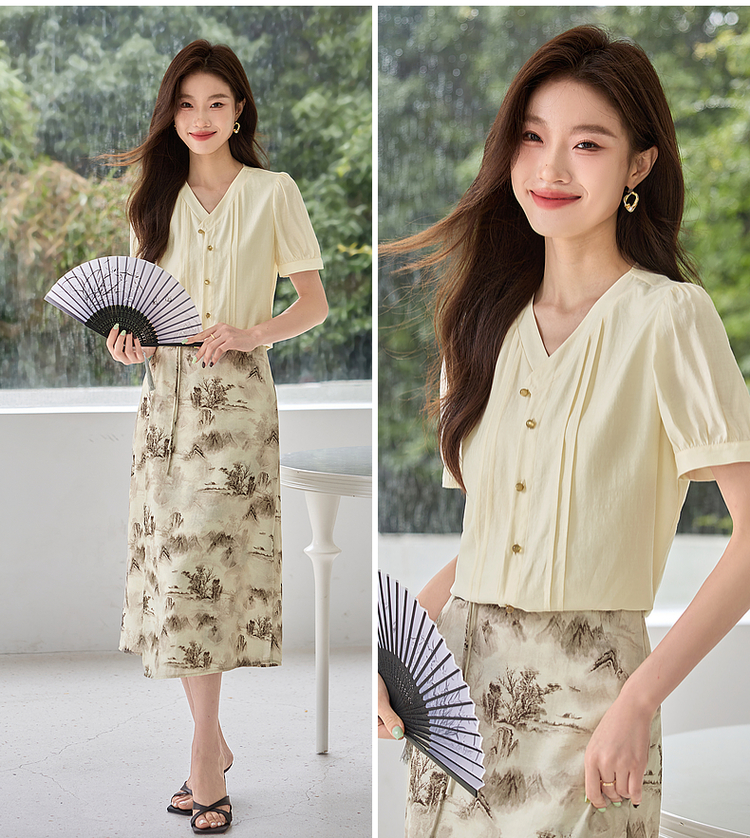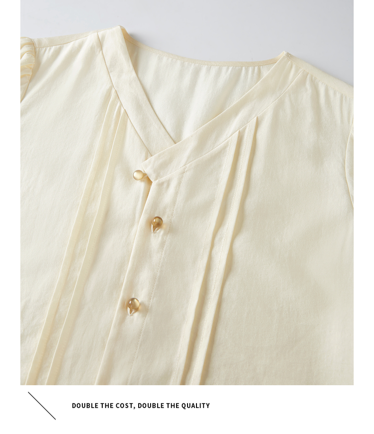 【专属特价】熙世界法式仿醋酸V领衬衫夏2025新款气质减龄短袖衬衣显瘦上衣