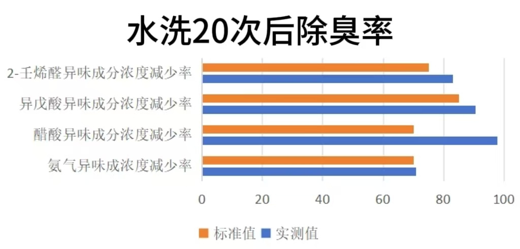 经过专业检测机构测验,水洗20次后,醋酸异味成分浓度依旧减少97.9%,异味成分浓度减少96%👍🏻