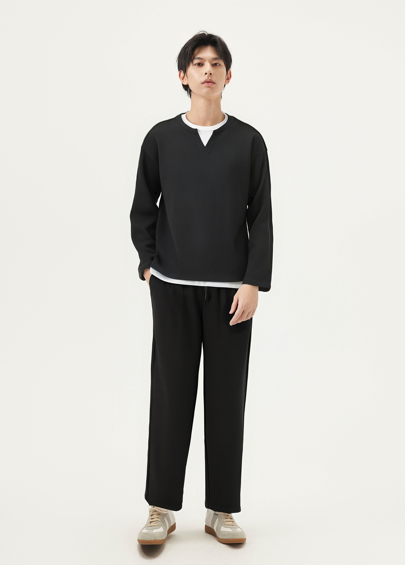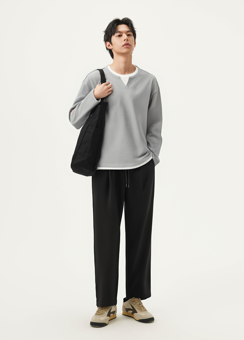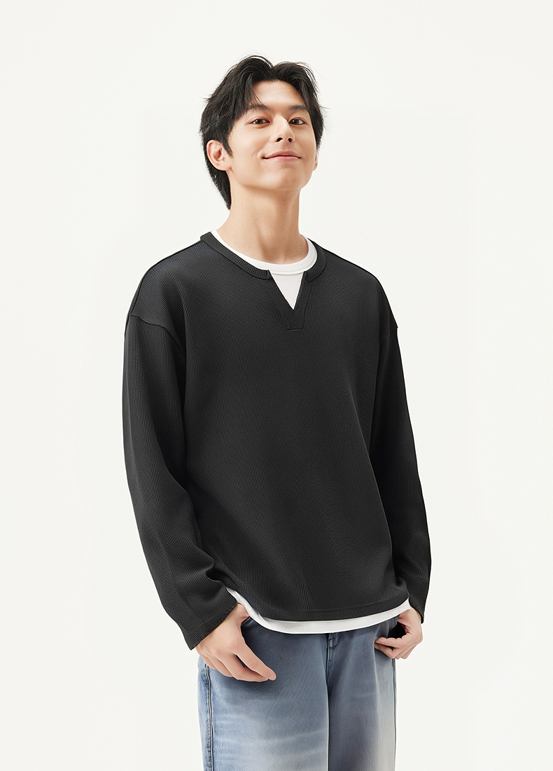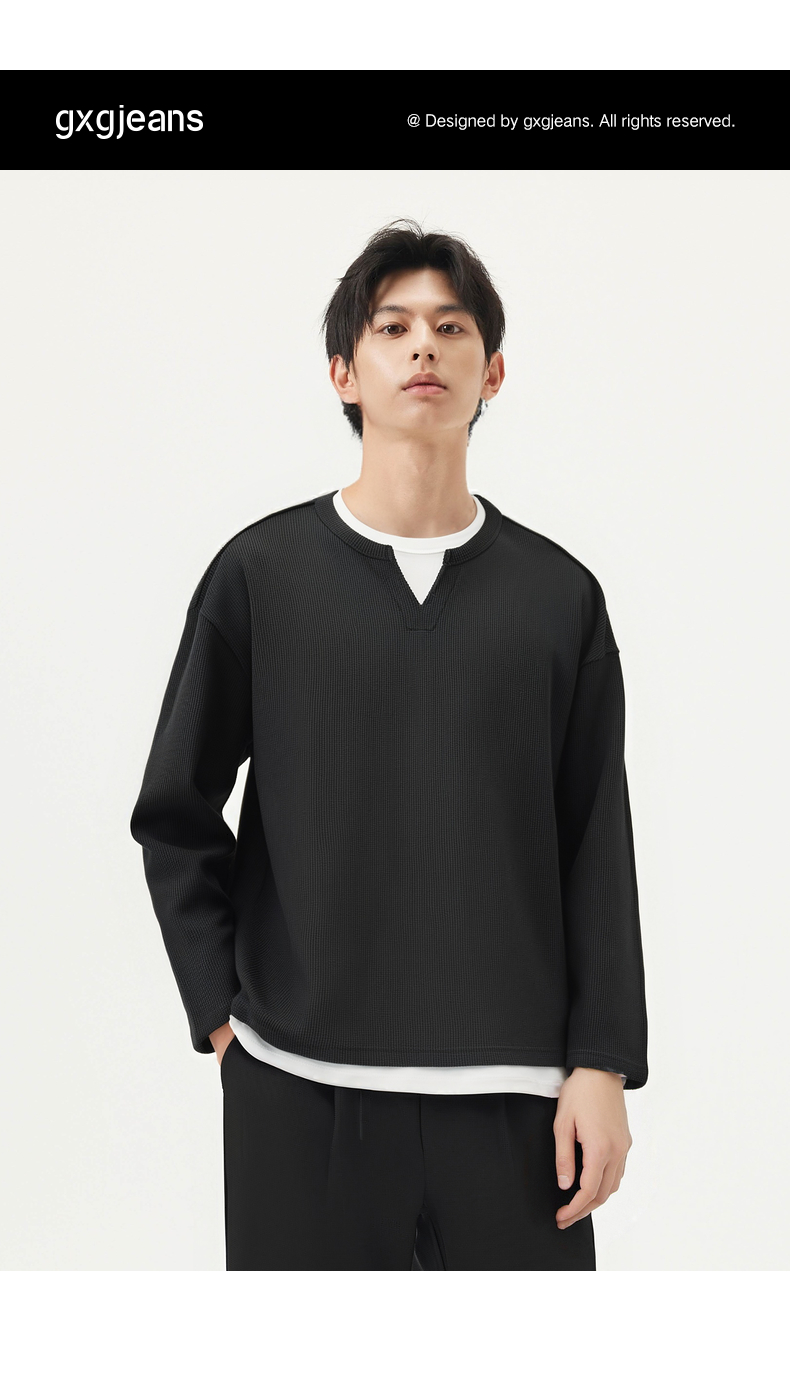 gxg.jeans男装 华夫格叠穿假两件V领长袖卫衣撞色上衣#J25D311069