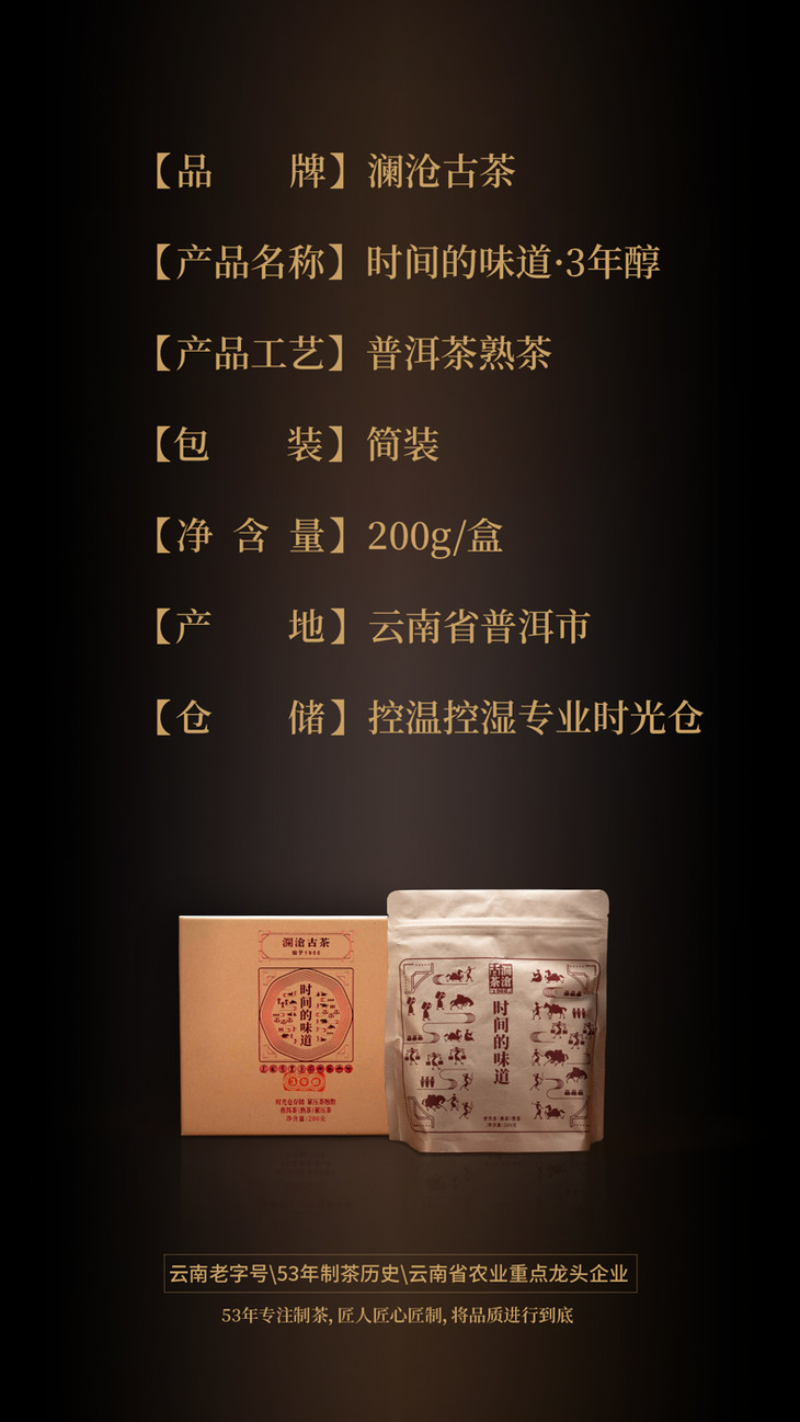 澜沧古茶时间的味道3年醇简装云南普洱茶熟茶饼茶罐装散茶叶200g