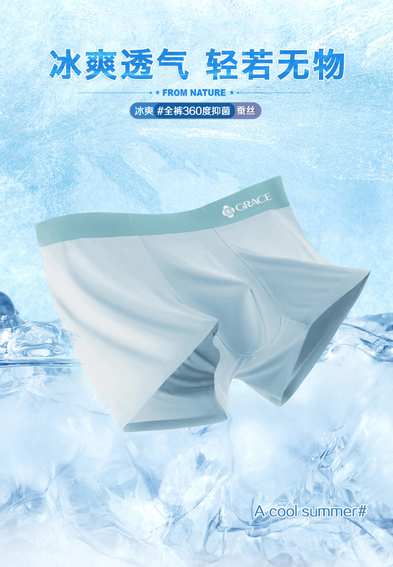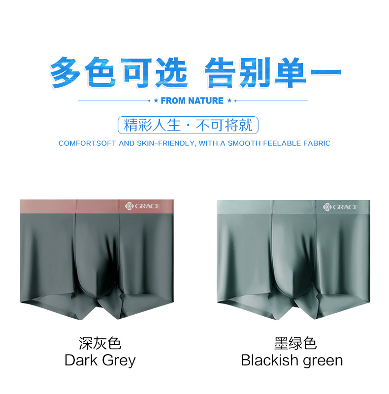 洁丽雅中腰冰丝男士内裤高弹亲肤青年运动休闲平角内裤男裤衩四角