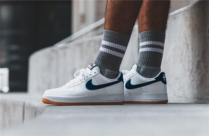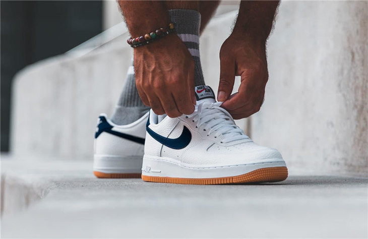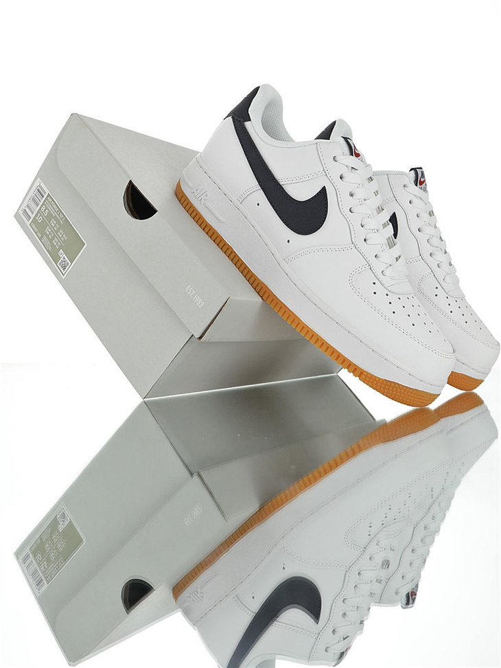 耐克Nike Air Force 1 '07 Low "White Obsidian" 硬质牛剖层移膜革 内置全掌air sole气垫 皮革白夜蓝生胶黄配色
