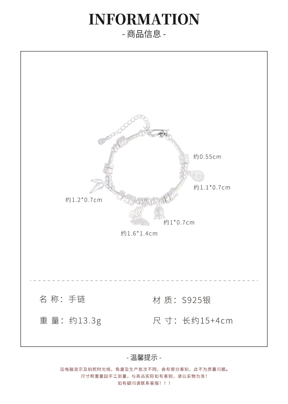 【温柔岁月】S925银竹叶水滴如意蝴蝶盘缠手链【SCH-CK40207-4】