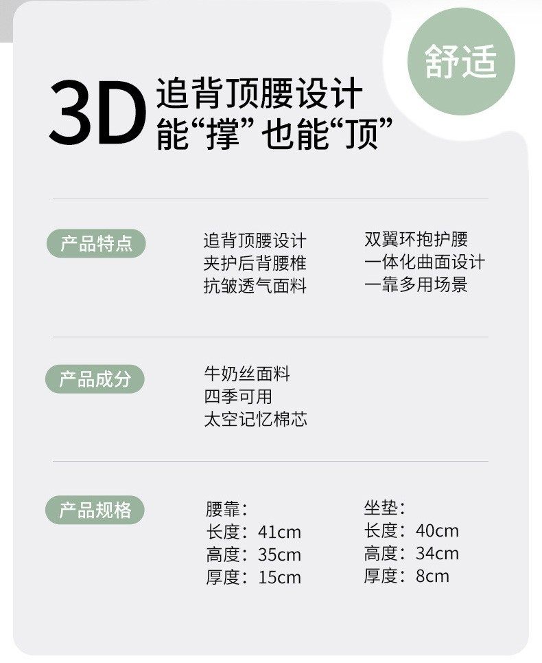 知梦人座椅腰靠坐垫套装 工位久坐神器 坐椅专用腰托靠背垫