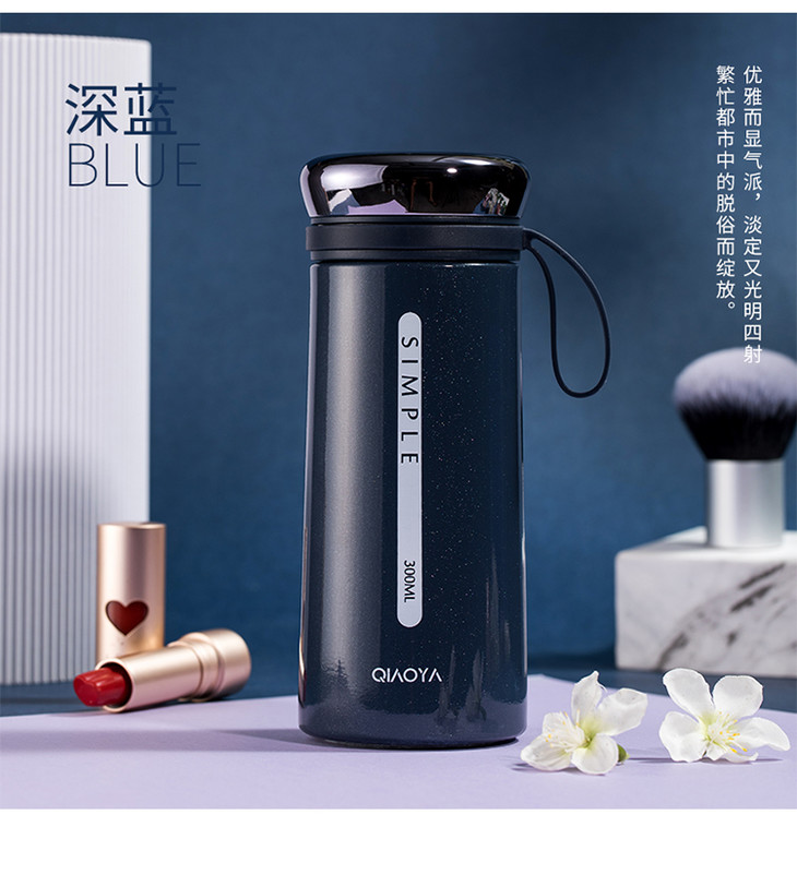 简约纯色英文乔亚保温杯水杯真空304不绣钢硅胶提绳小身材大容量水杯310mlJJ20915