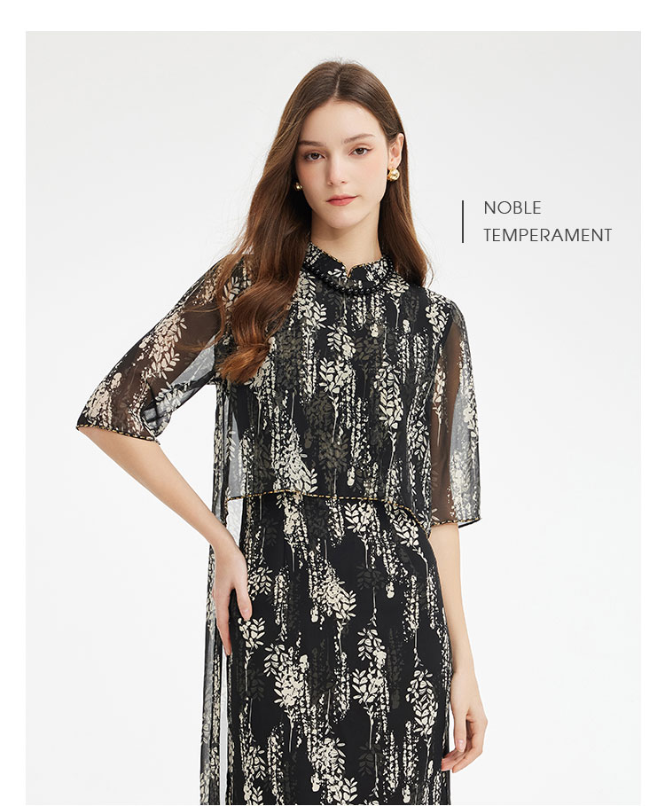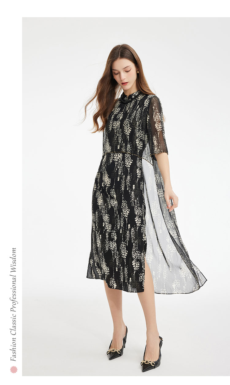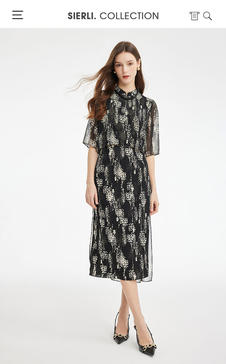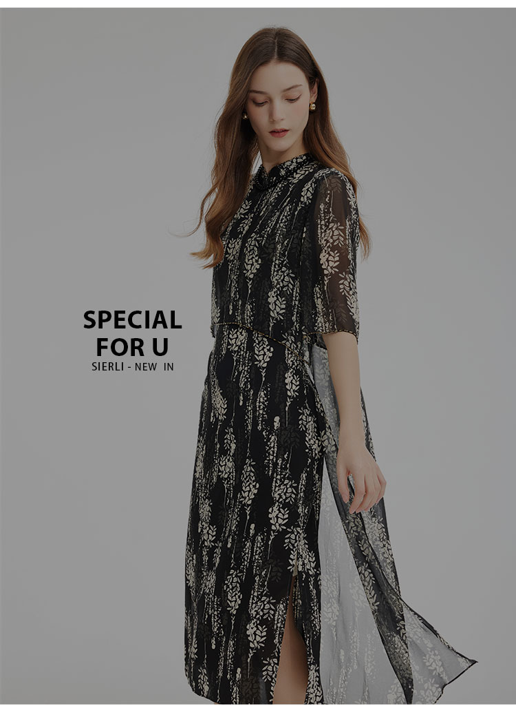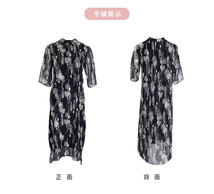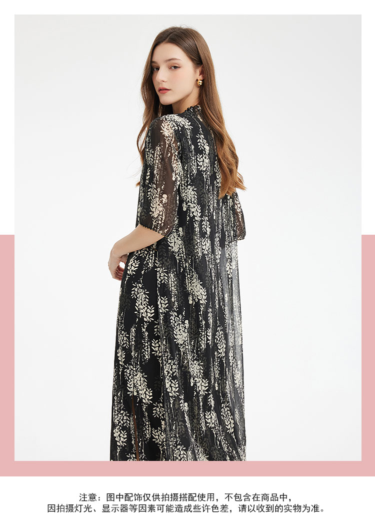 PF889斯尔丽2024新款浪漫印花轻中式结合飘逸版型宽松显瘦中袖连衣裙