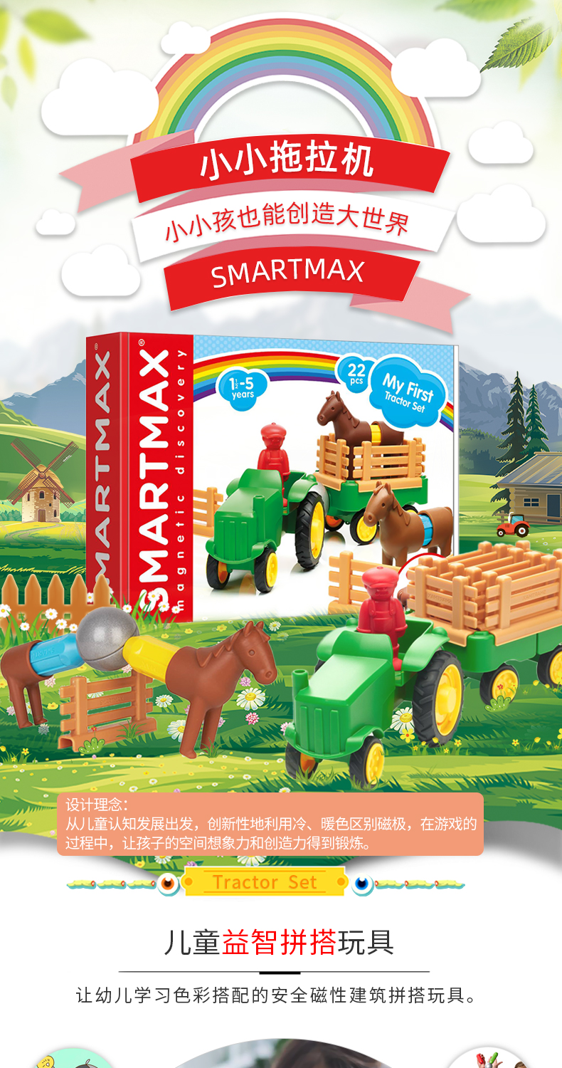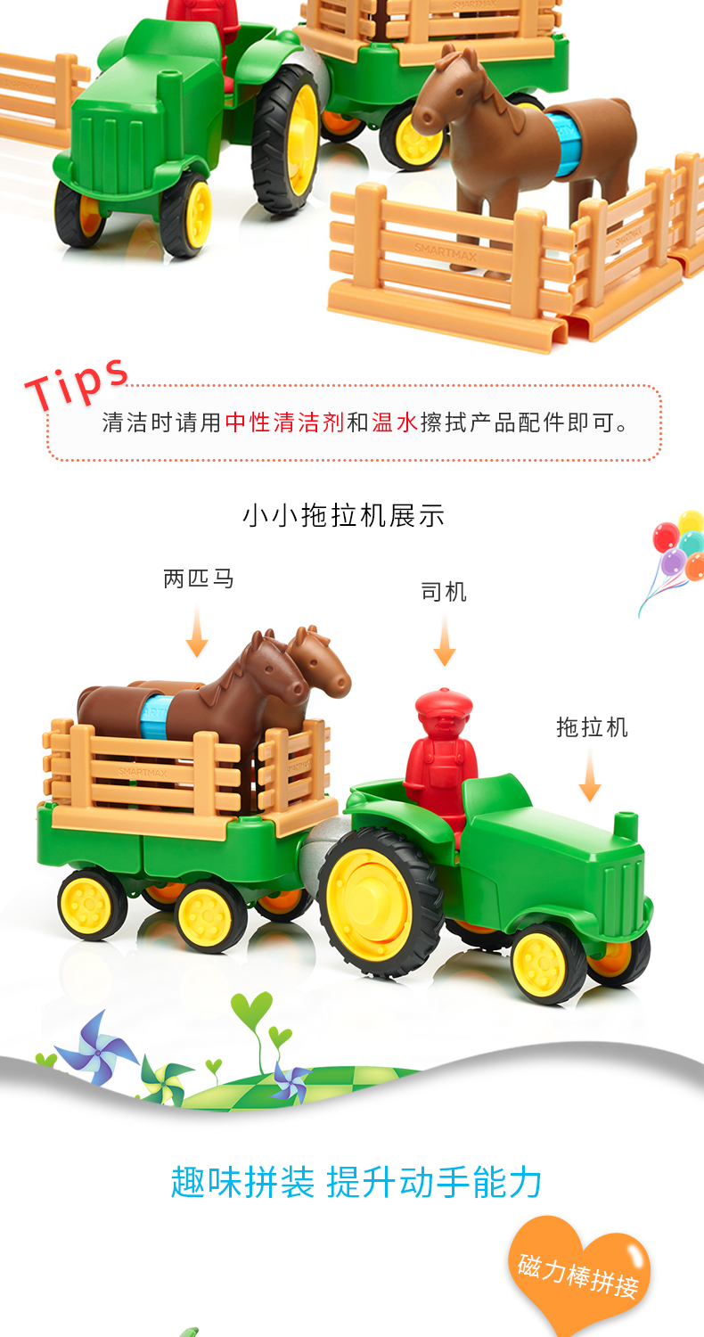 SMARTMAX 小小拖拉机 磁力车益智玩具 1.5岁+ 22PCS
