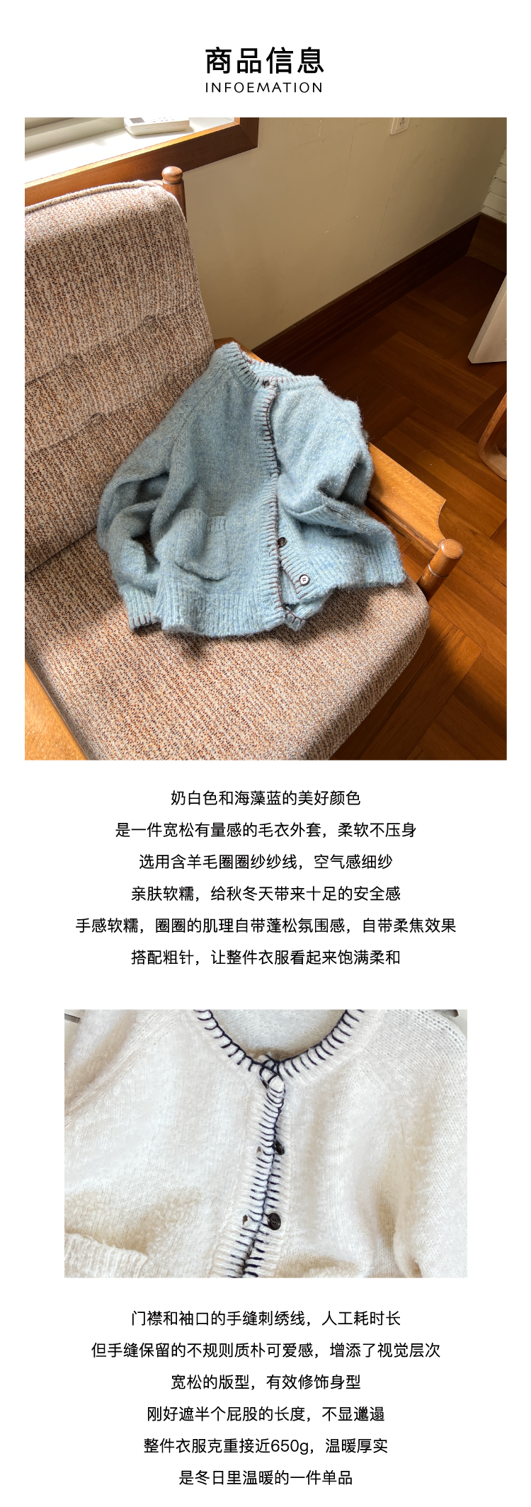 nothe Case布然/NC253224a/「奶霜圈圈」手工绣花羊毛开衫