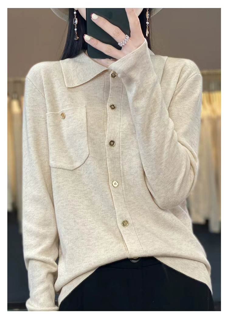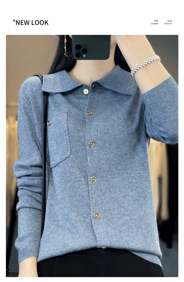 新款早春羊毛针织打底衫女款宽松翻领外搭薄款毛衣SZ2703
