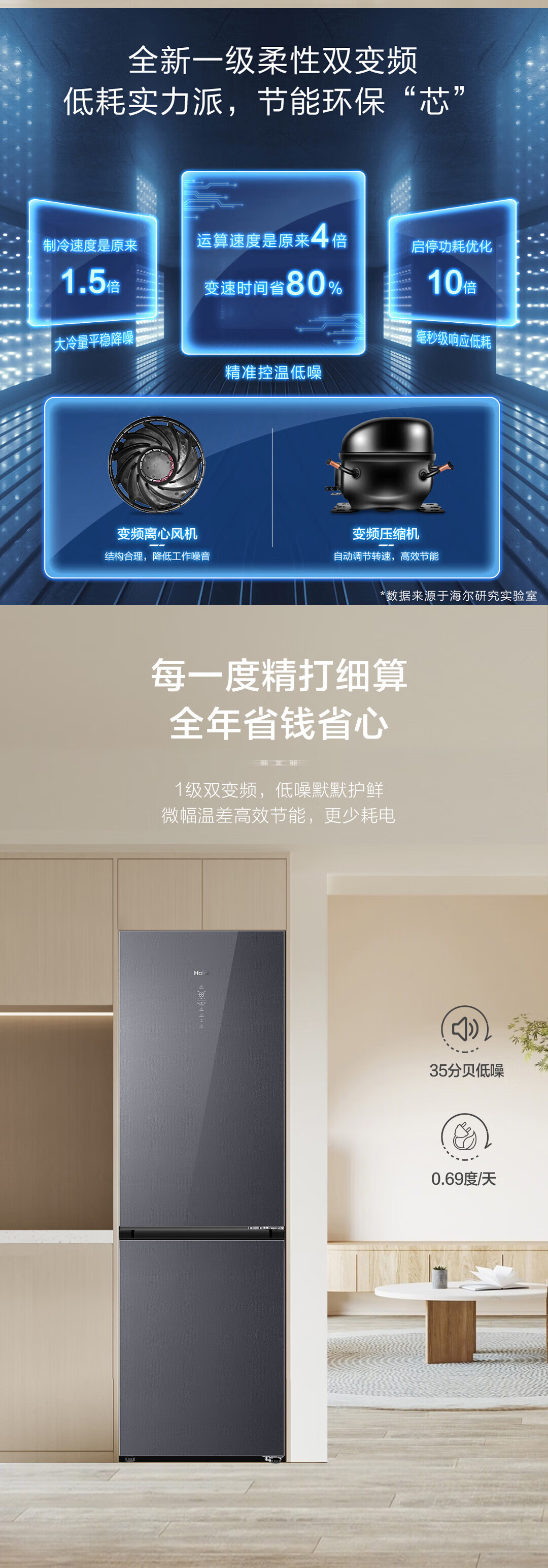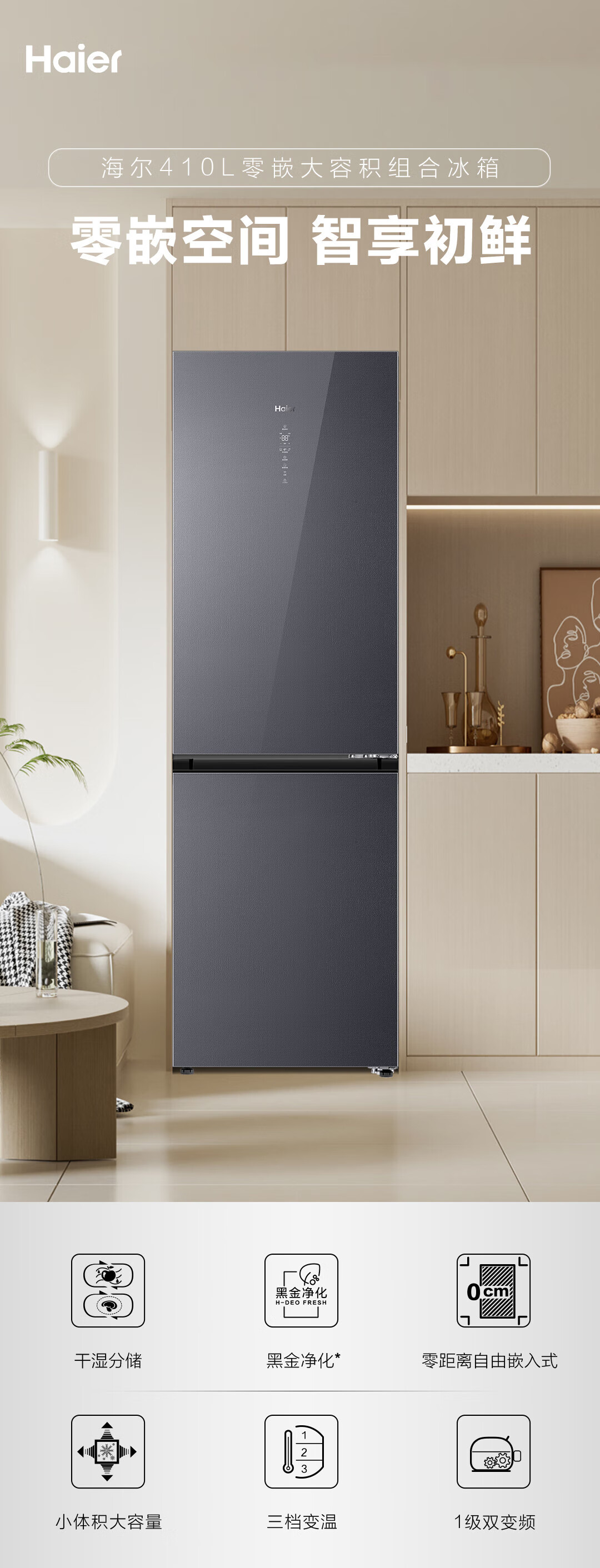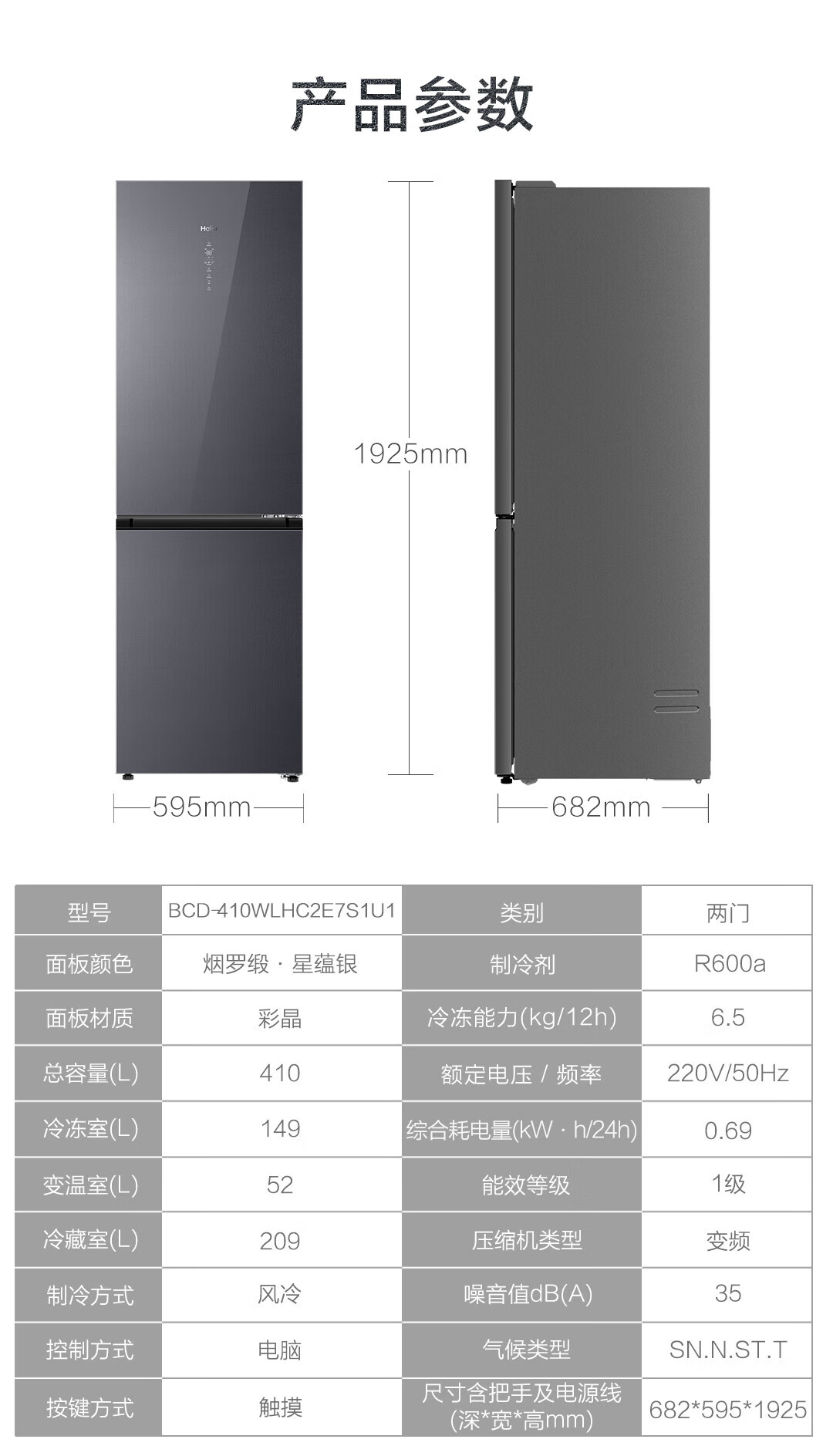 海尔两门冰箱 BCD-410WLHC245S1U1