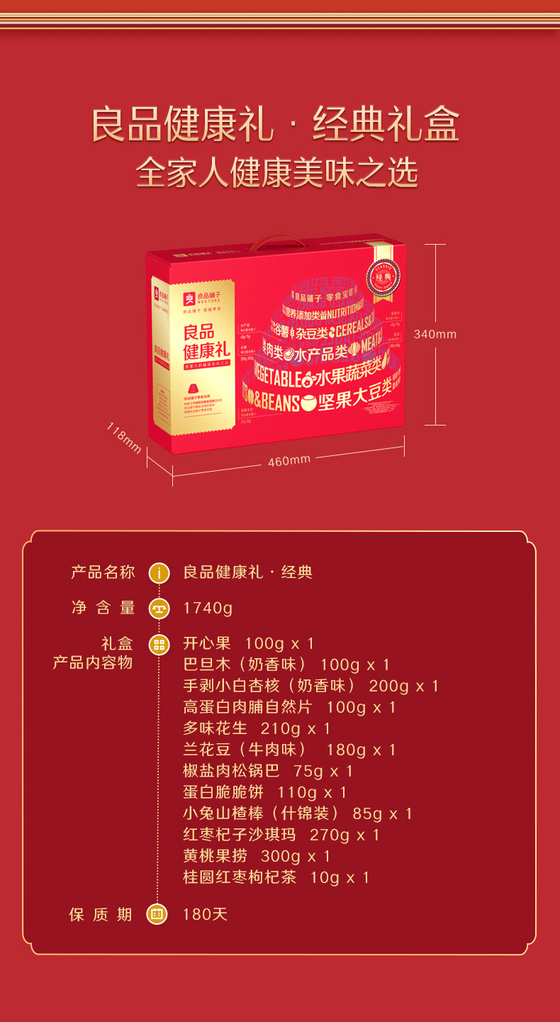 良品铺子经典良品健康礼1740g坚果零食大礼包送礼年货团购礼 盒装【NHSD】