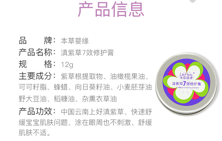 本草婴缘滇紫草7效修护膏12G