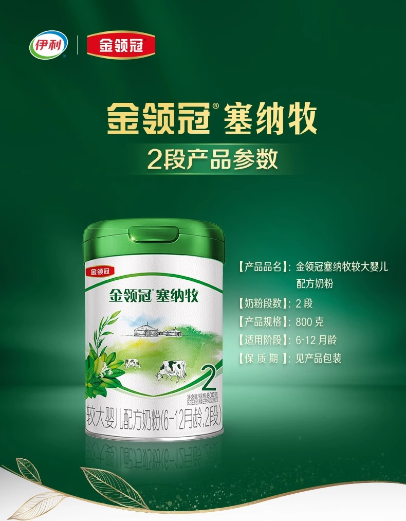 伊利金领冠塞纳牧较大婴儿配方奶粉2段(6-12月龄)800g