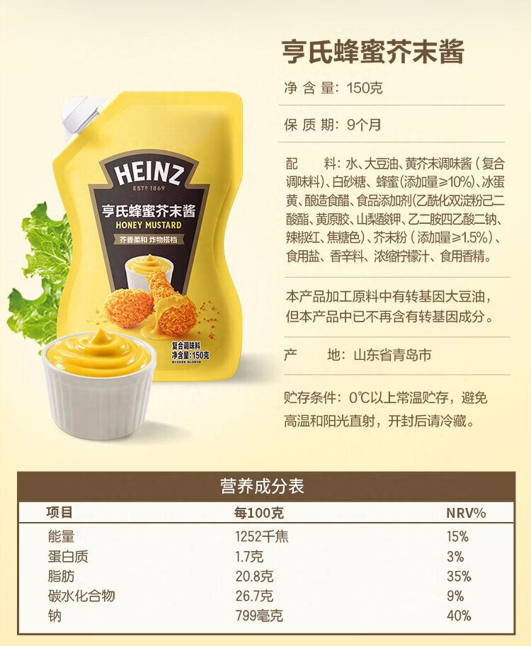 亨氏蜂蜜芥末酱 150g/袋