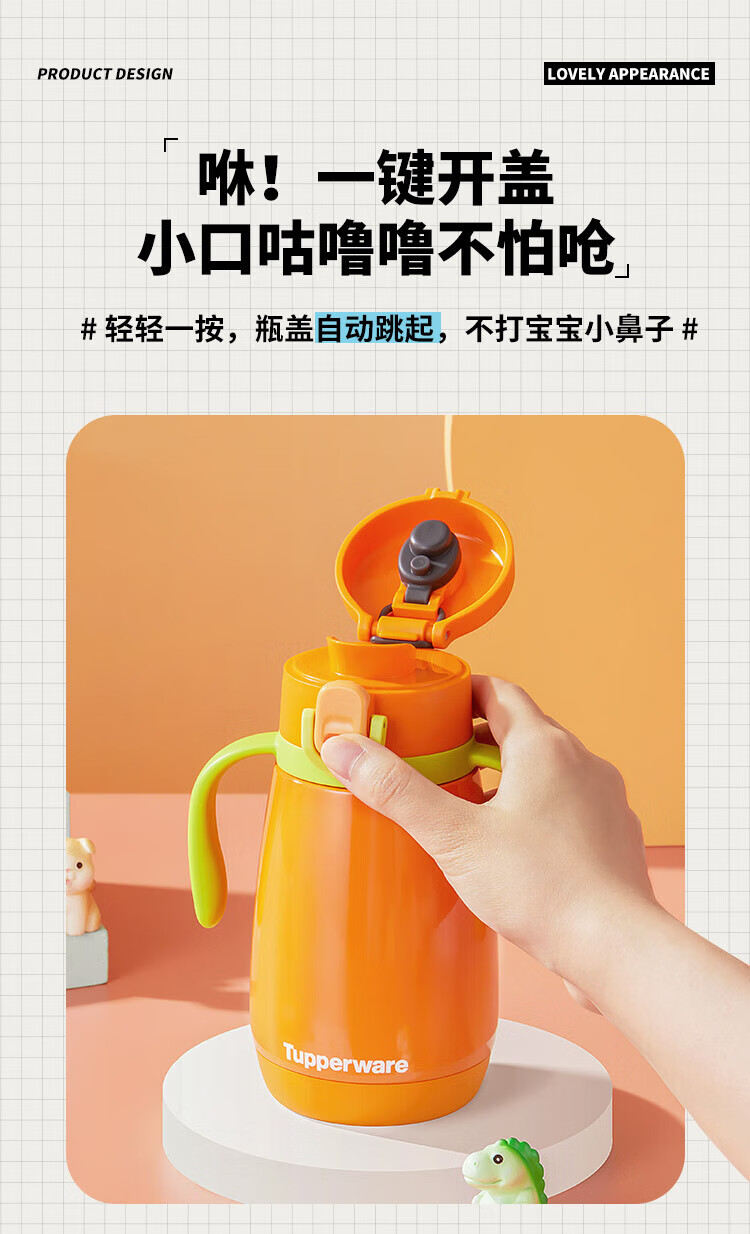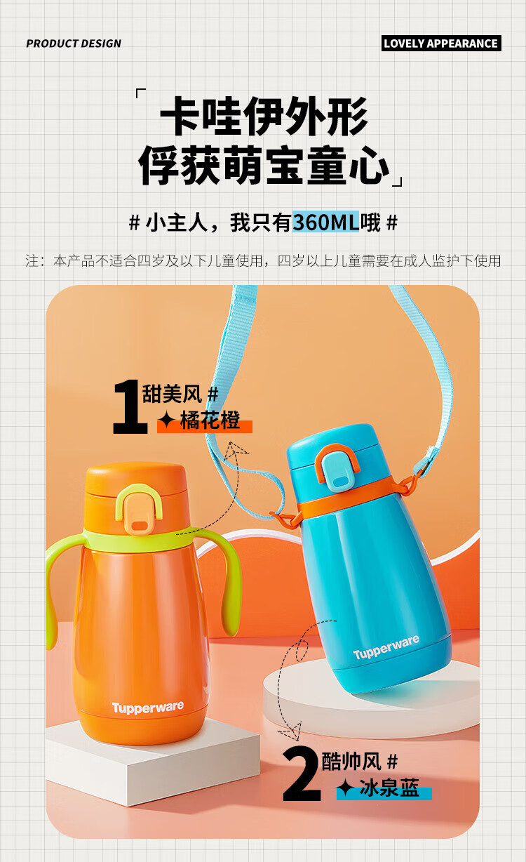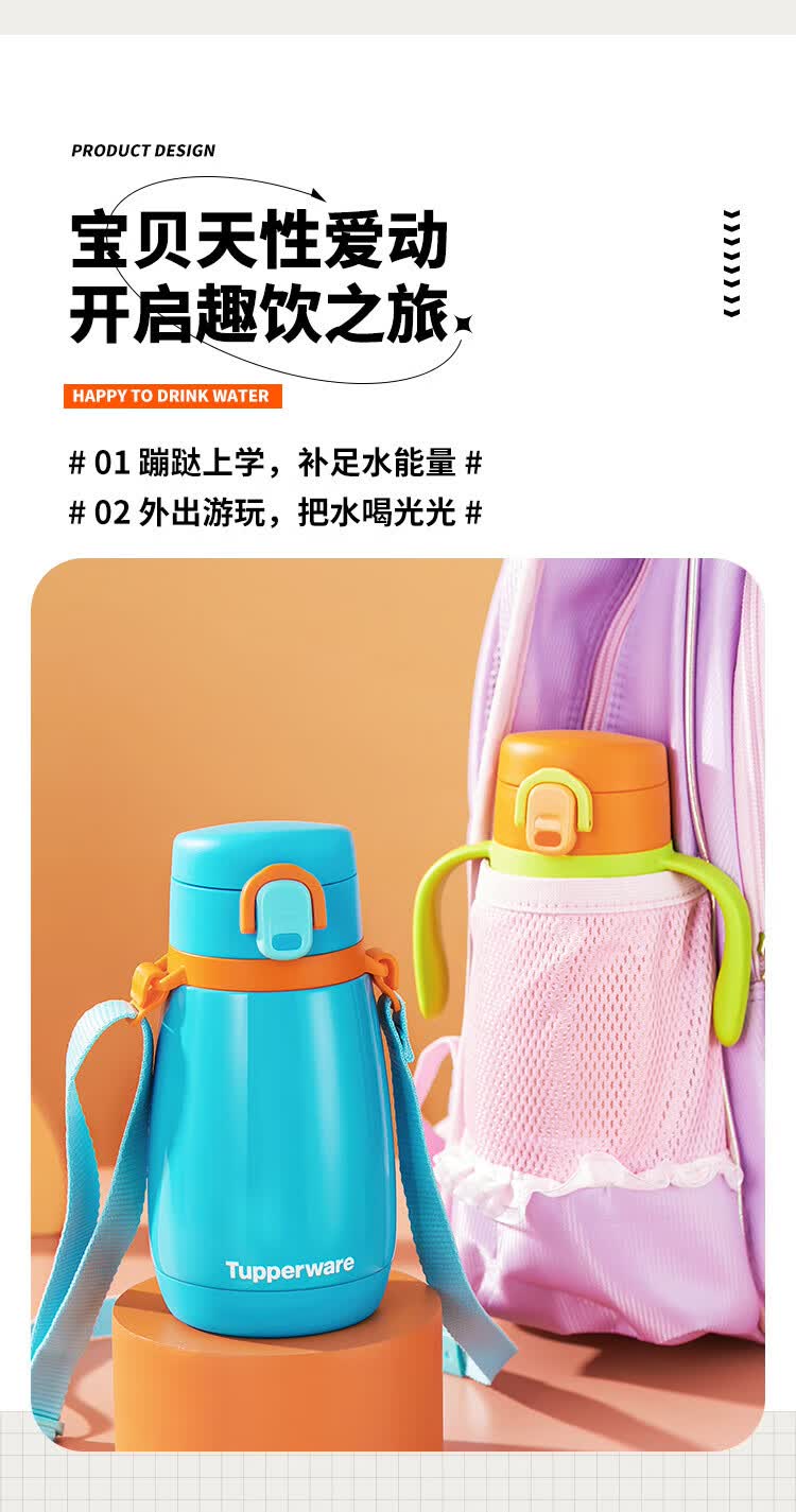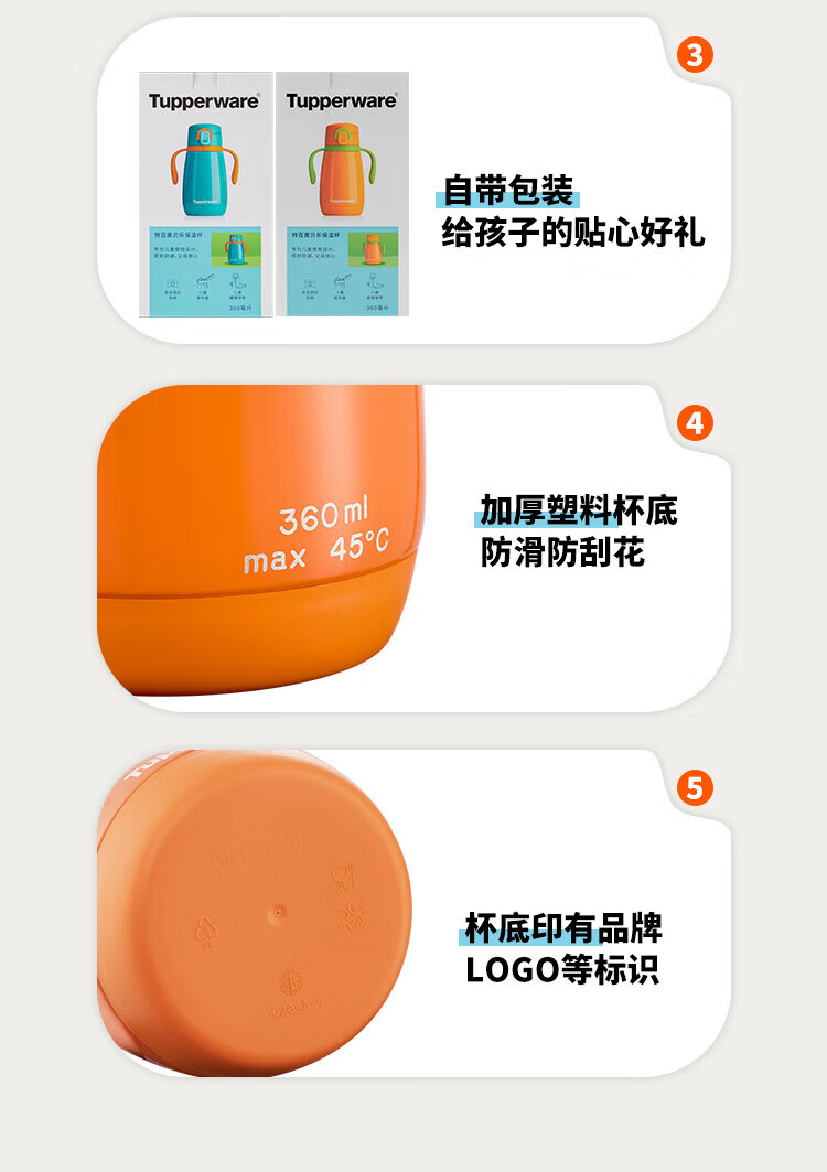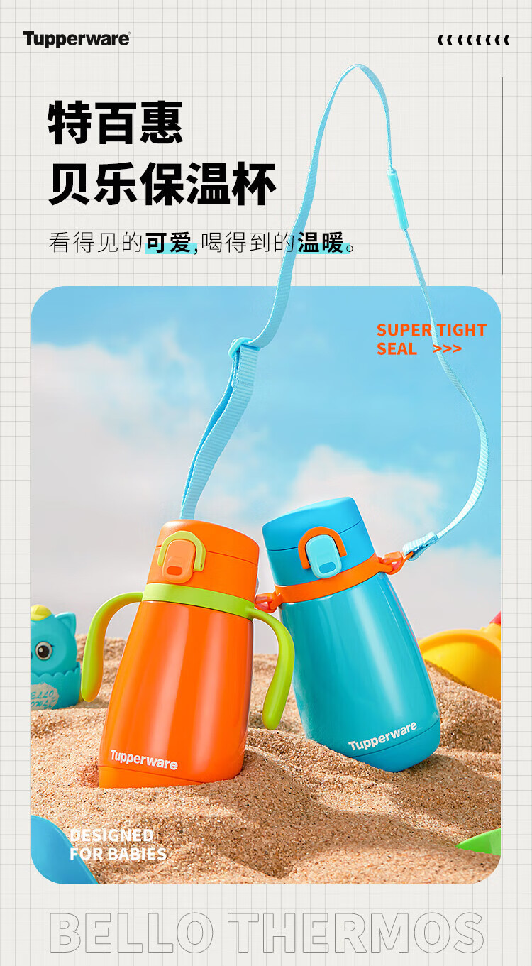 特百惠(Tupperware)贝乐儿童保温杯不锈钢360ml(橙色/蓝色颜色备注)