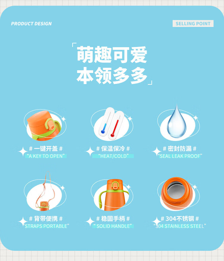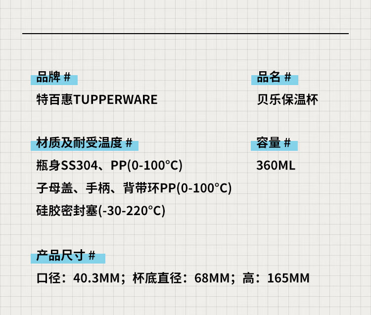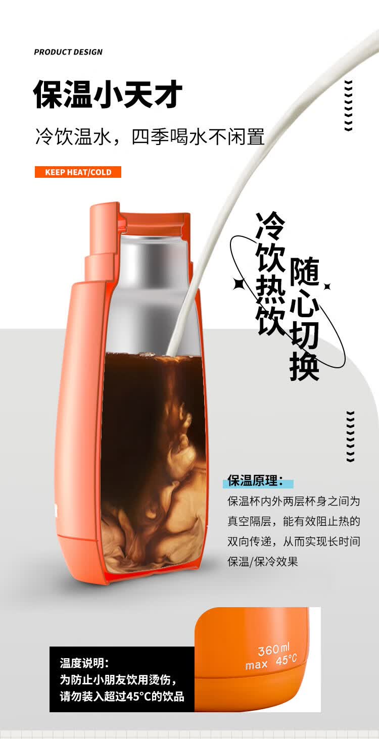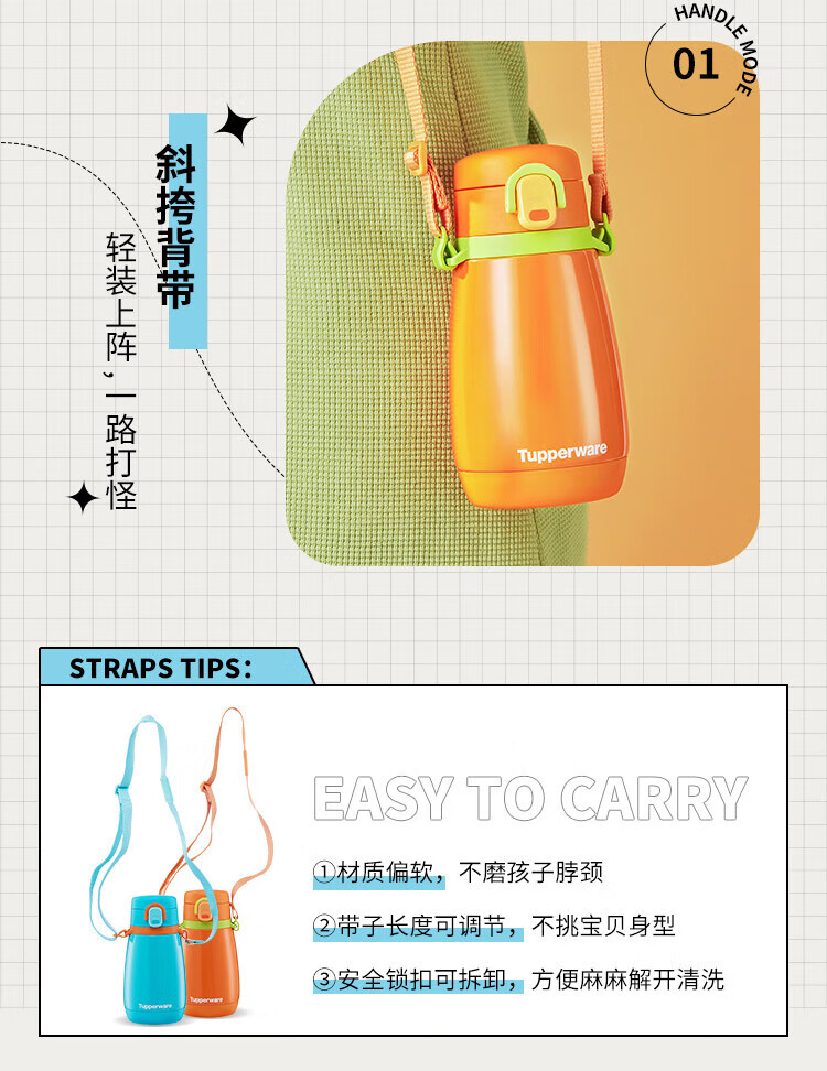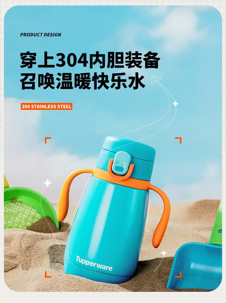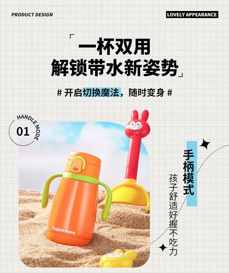 特百惠(Tupperware)贝乐儿童保温杯不锈钢360ml(橙色/蓝色颜色备注)