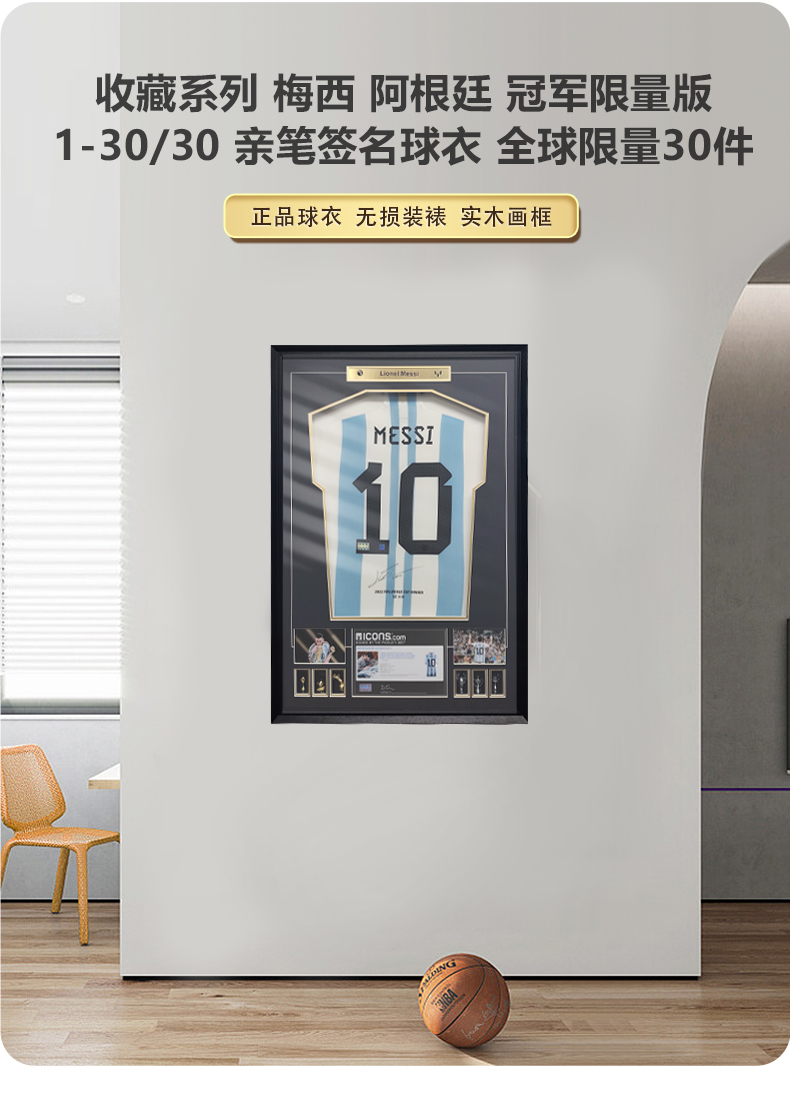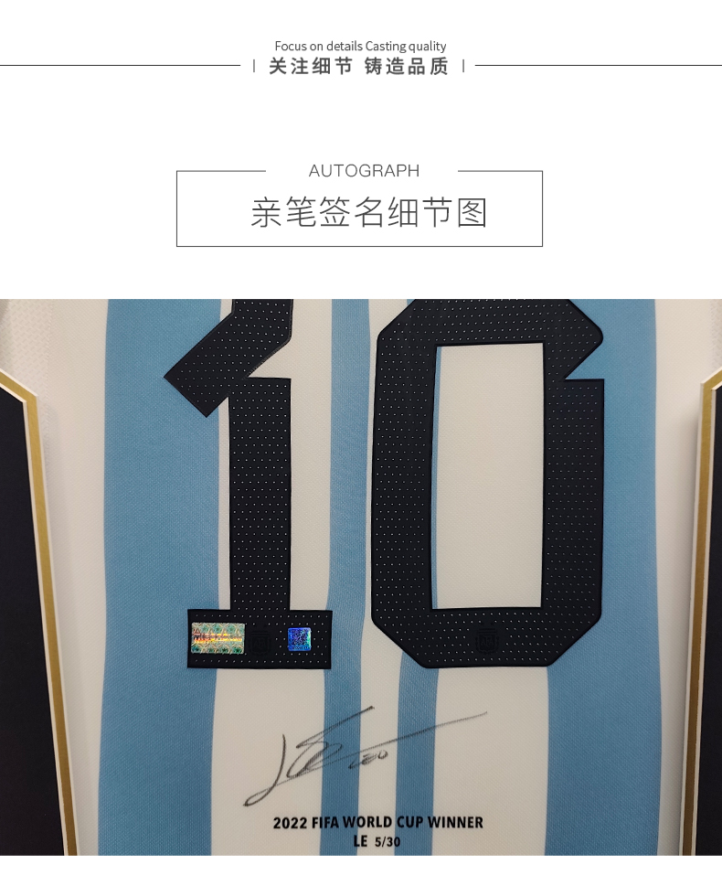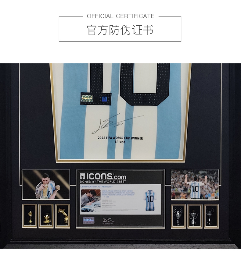 收藏系列 梅西 阿根廷 冠军限量版1-30/30 亲笔签名球衣 全球限量30件