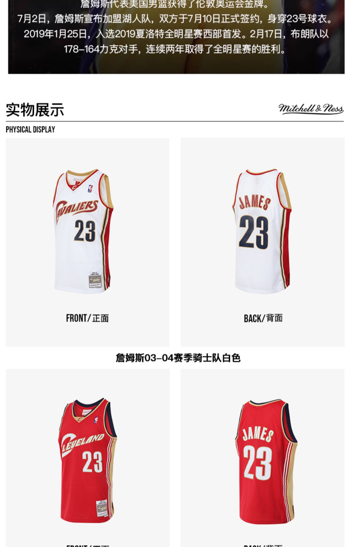 Mitchell&ness 骑士詹姆斯 03-04赛季白色/15-16赛季蓝色 球衣