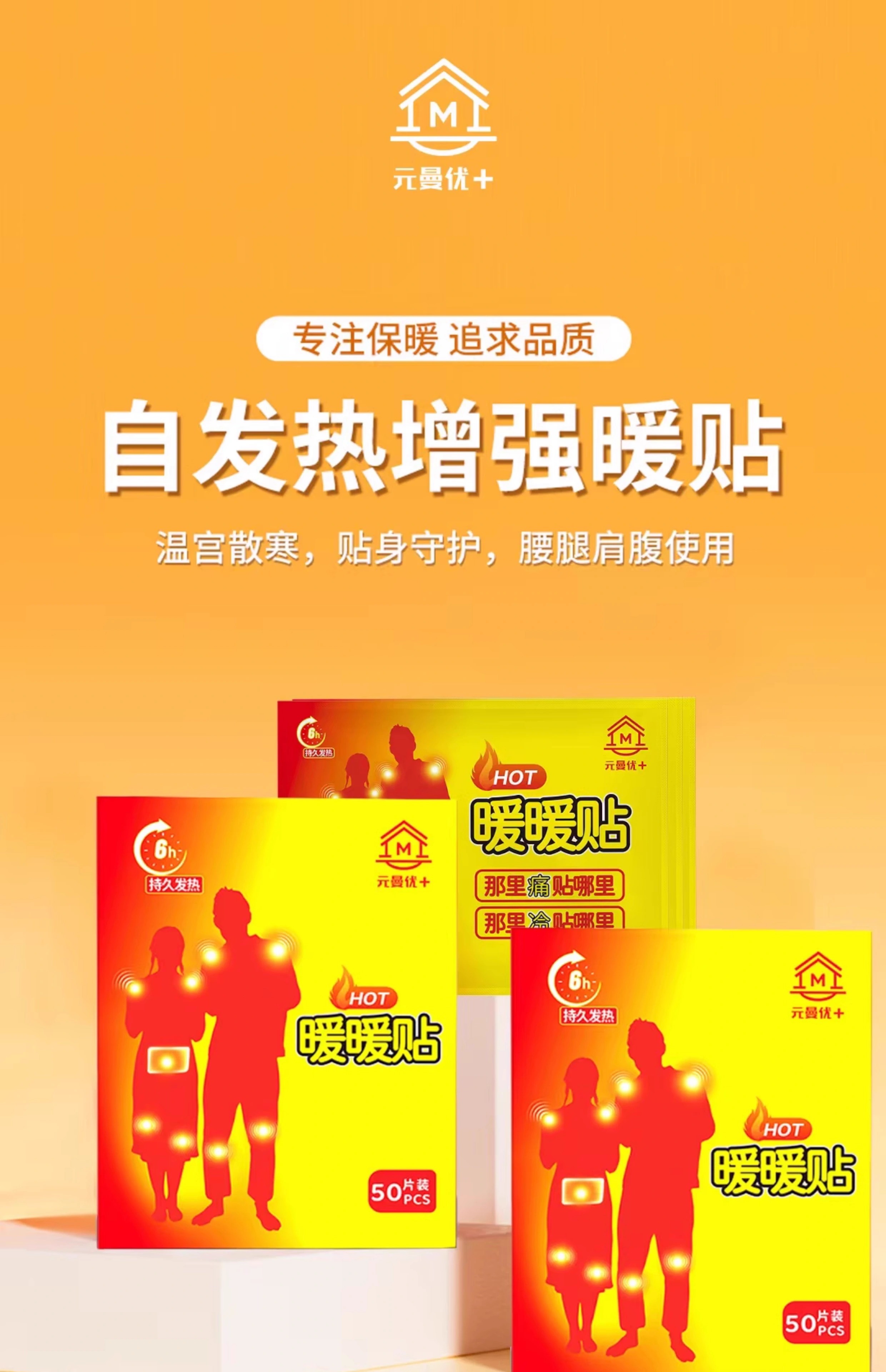元曼优+冬日暖暖贴50片(平均53℃,6-8小时持续发热)