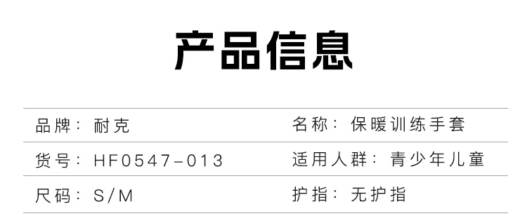 小李子正品NIKE耐克足球训练保暖手套青少年儿童款HF0547-013