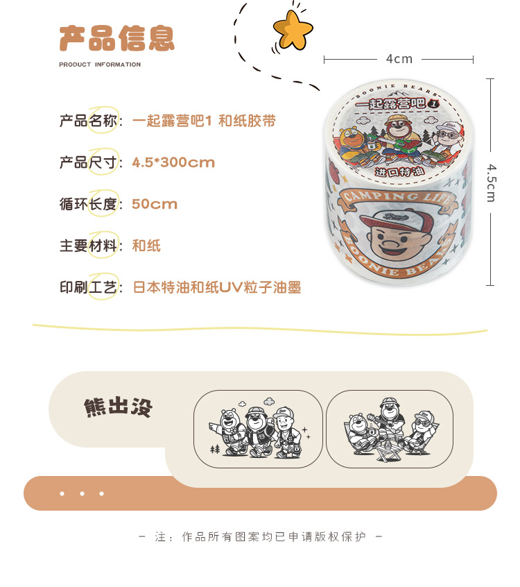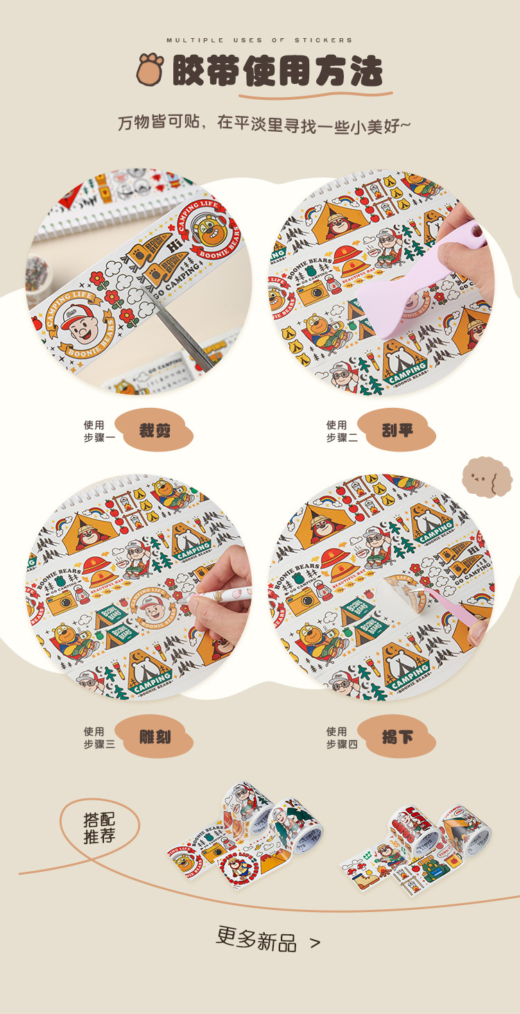 TIPETOYS手账胶带熊出没一起露营吧 1XCM5903