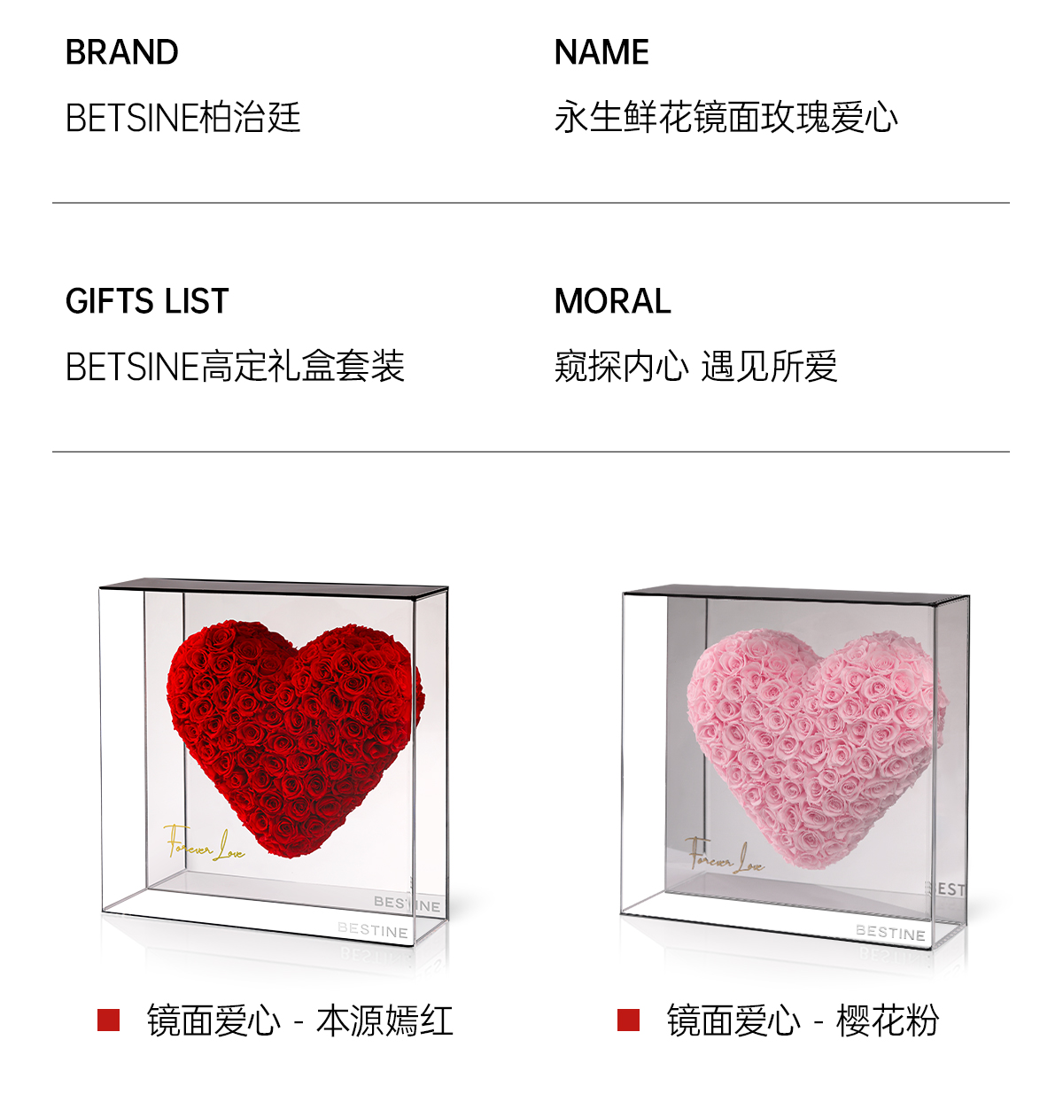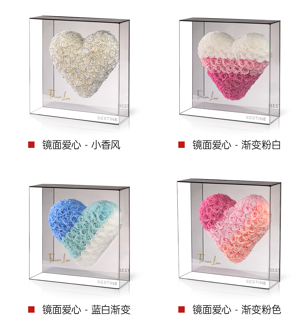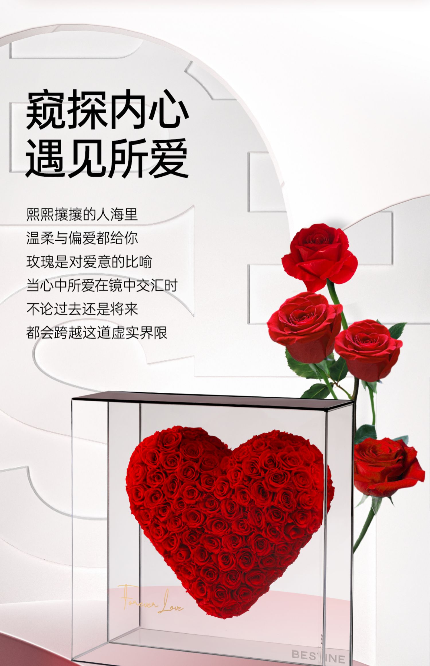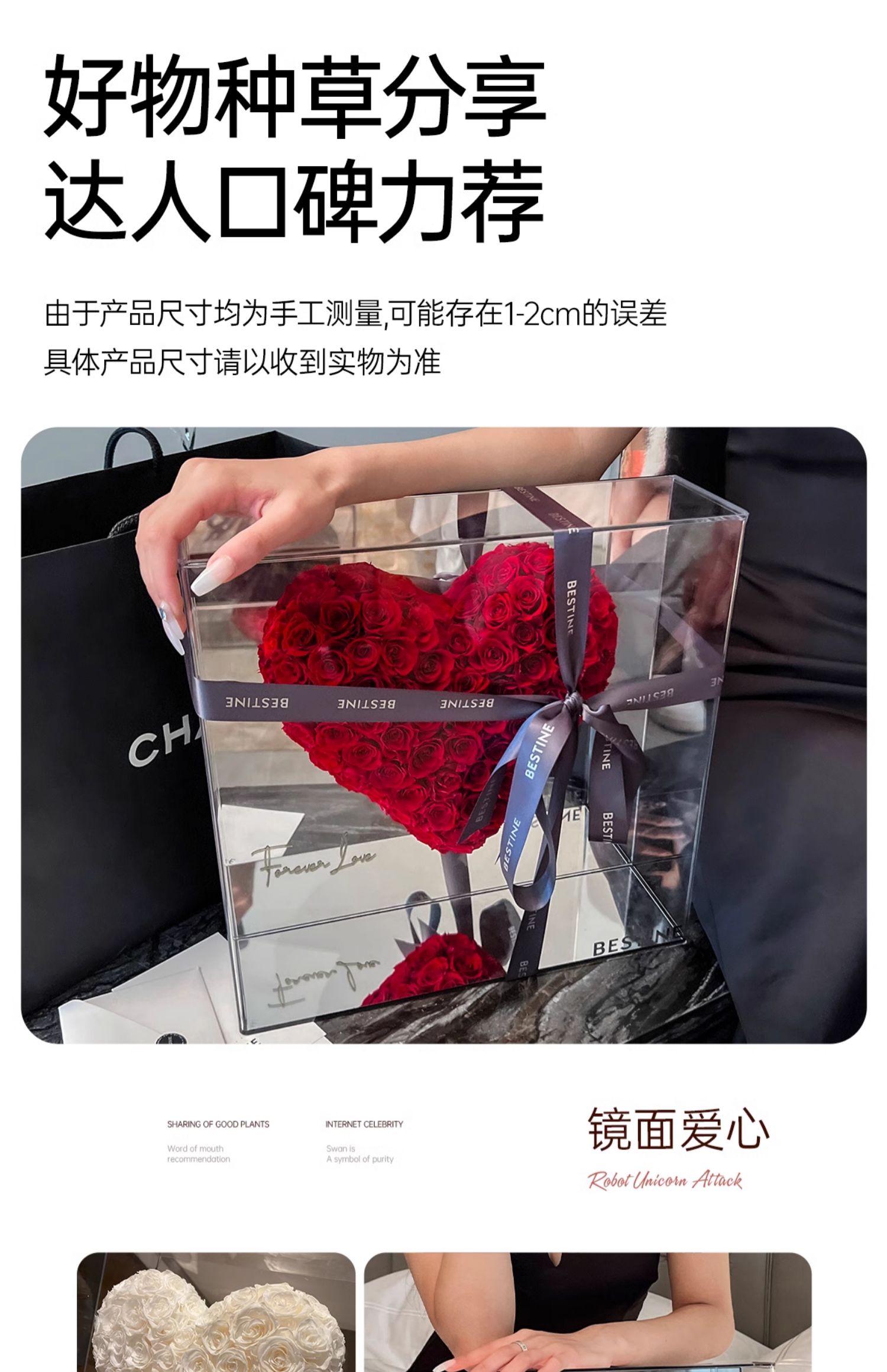 VBEINGS花语 镜面爱心玫瑰 永生花玫瑰花摆件生日送女生女友老婆礼物