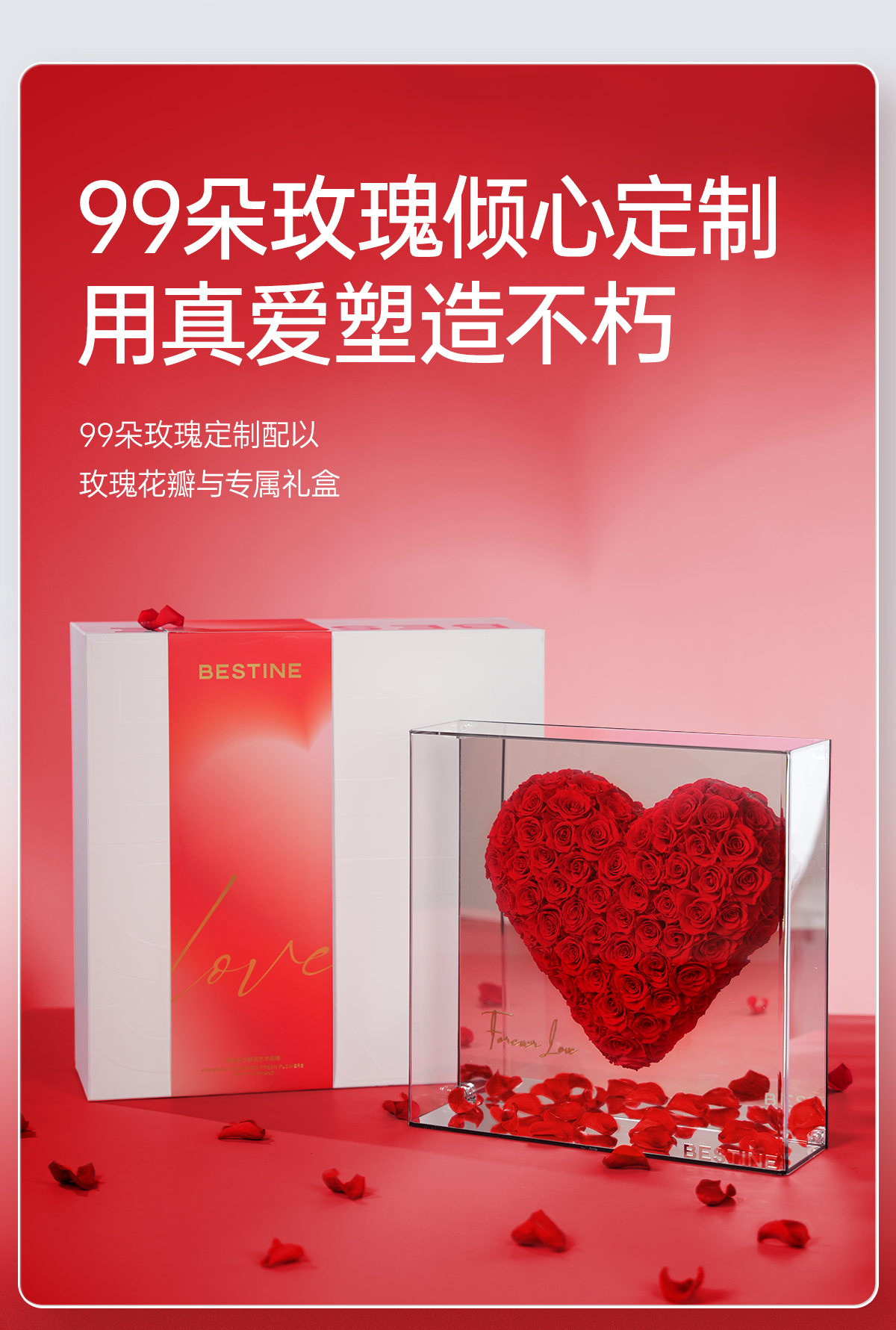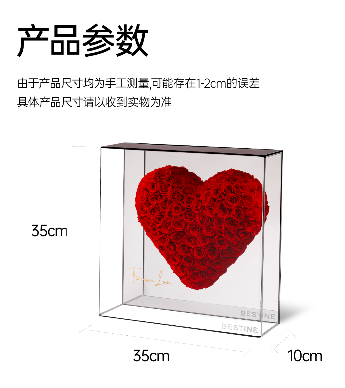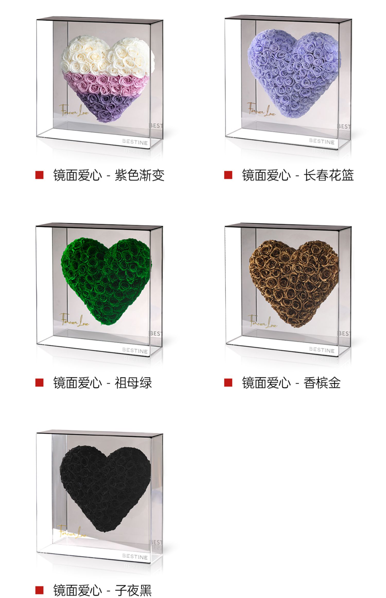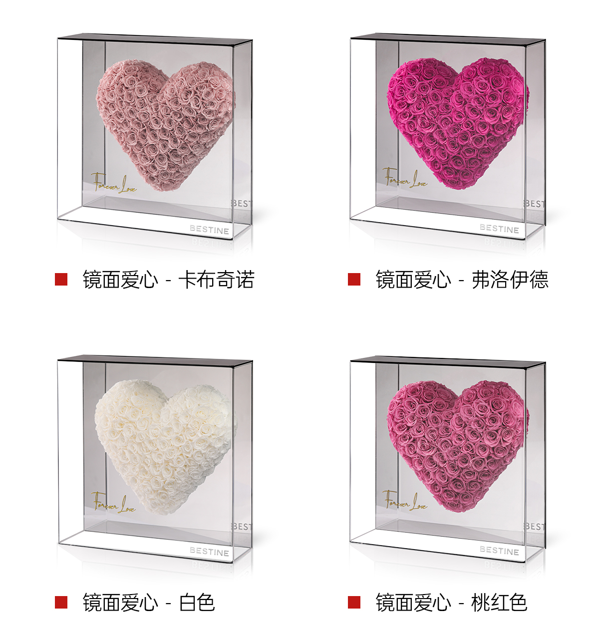 VBEINGS花语 镜面爱心玫瑰 永生花玫瑰花摆件生日送女生女友老婆礼物