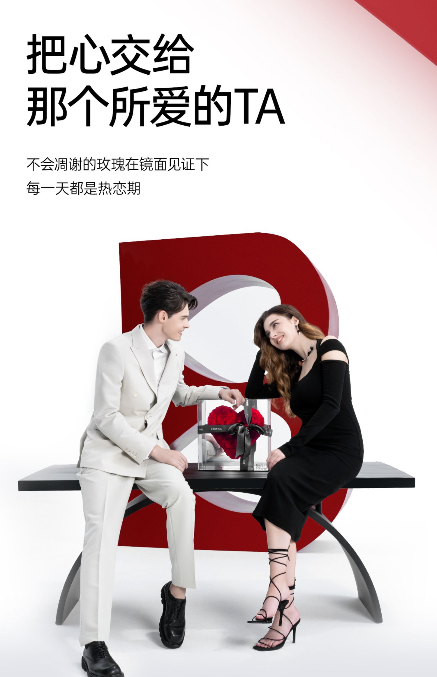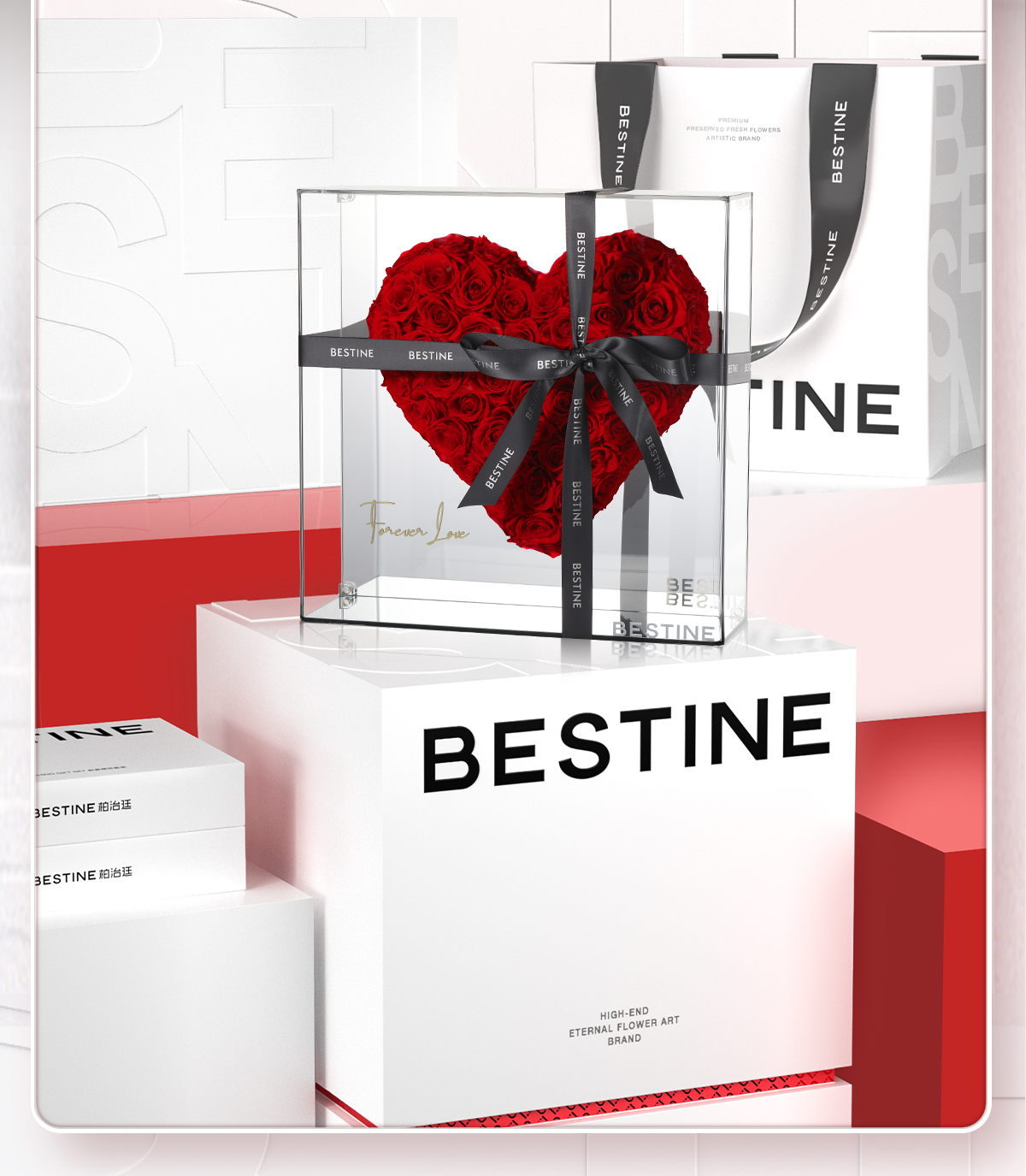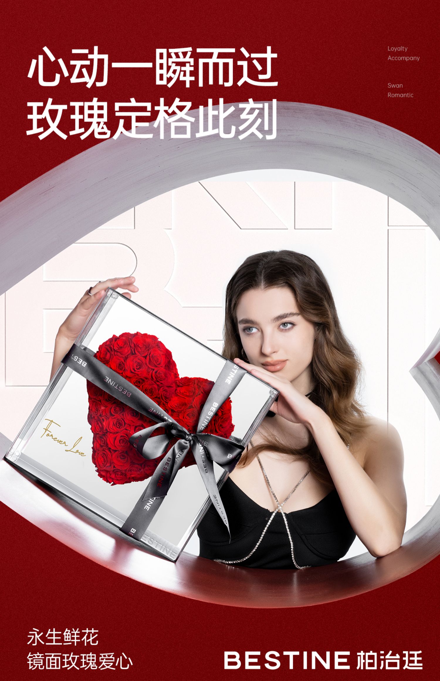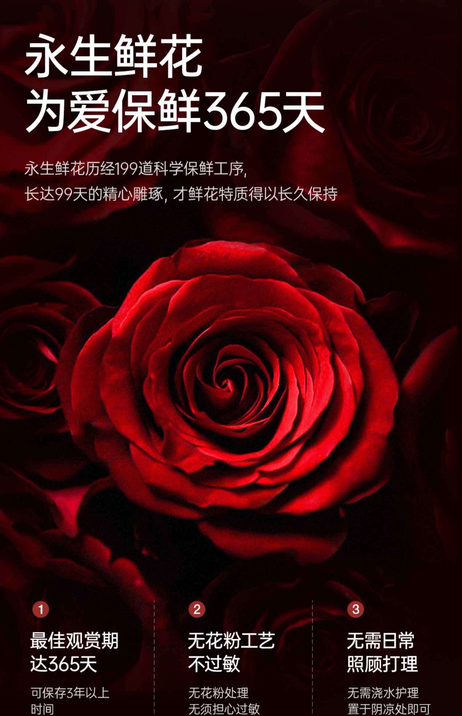 VBEINGS花语 镜面爱心玫瑰 永生花玫瑰花摆件生日送女生女友老婆礼物