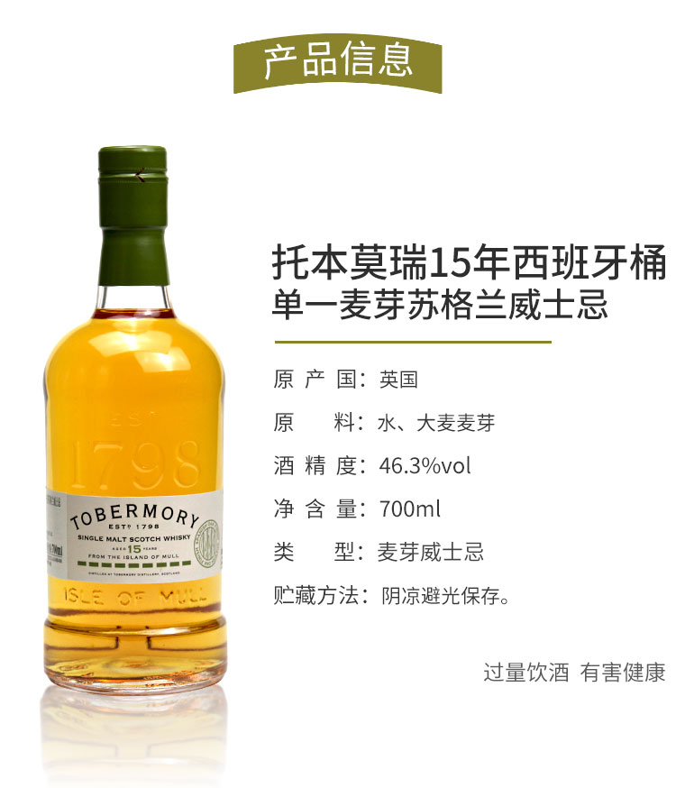托本莫瑞15年西班牙桶单一麦芽苏格兰威士忌