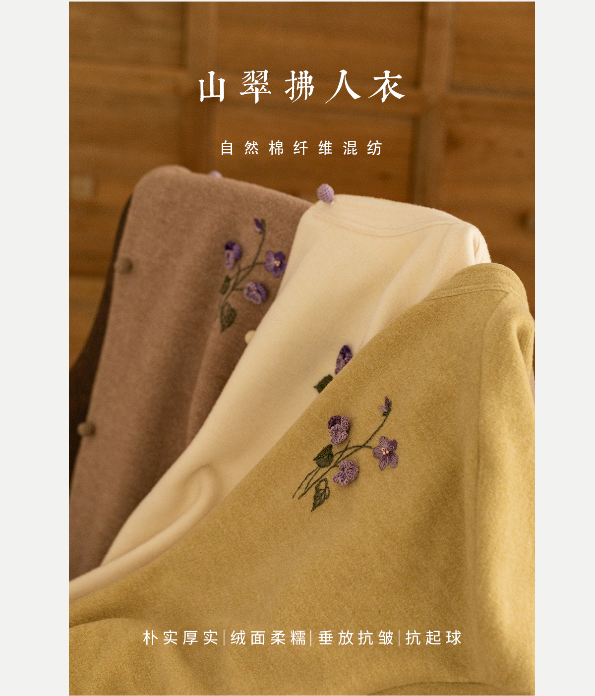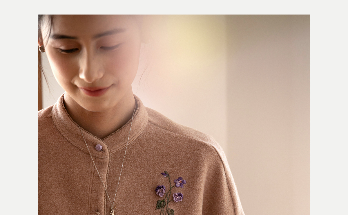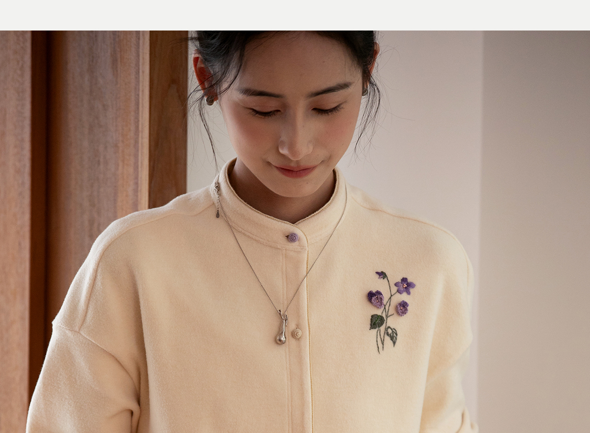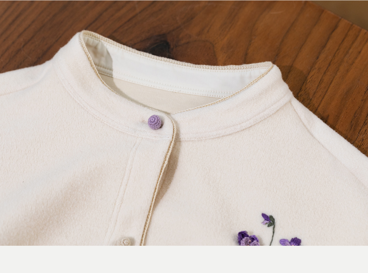 牧衣游原创 手工刺绣绒面棉外套女秋季柔软亲肤宽松百搭开衫 梦丘