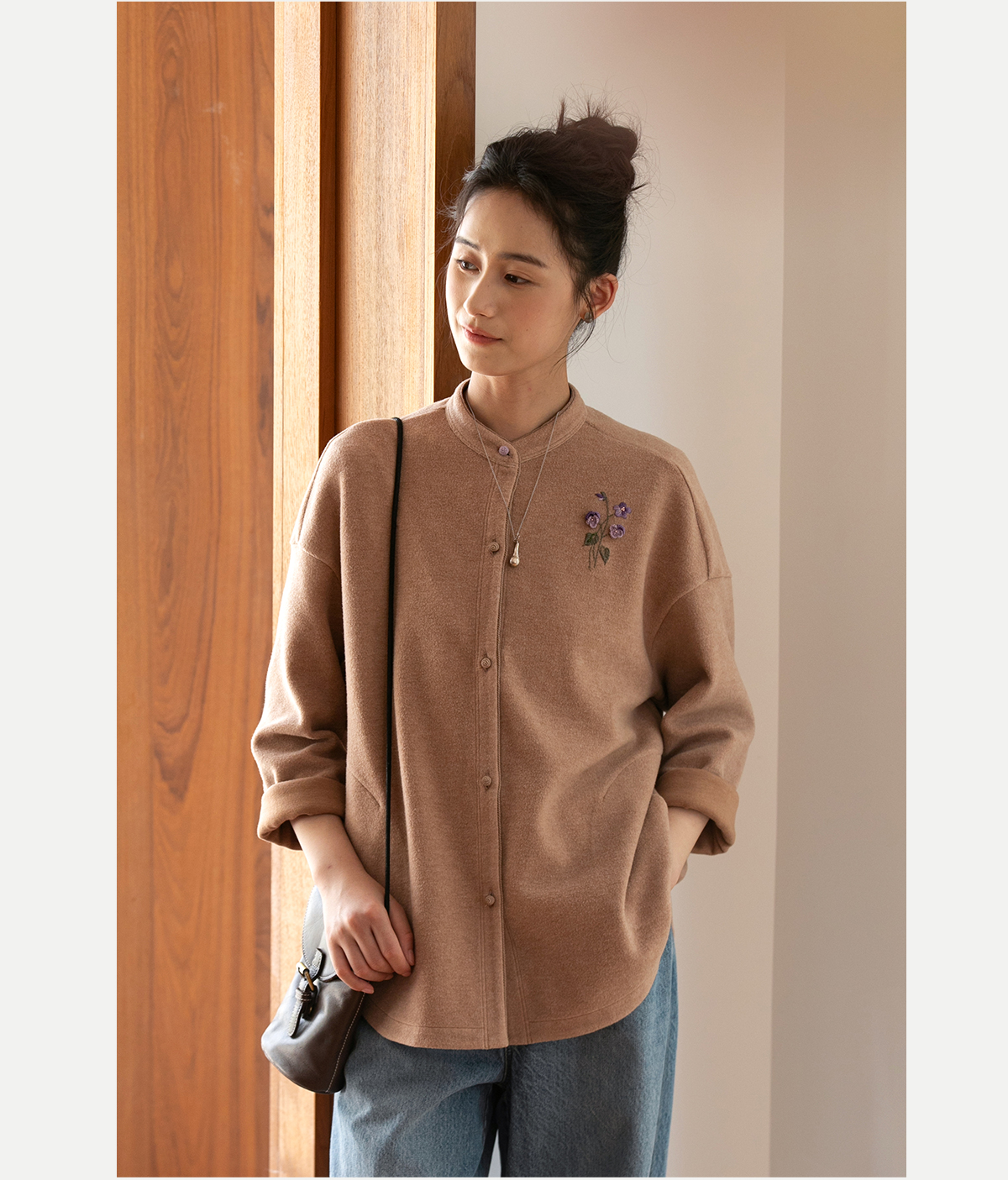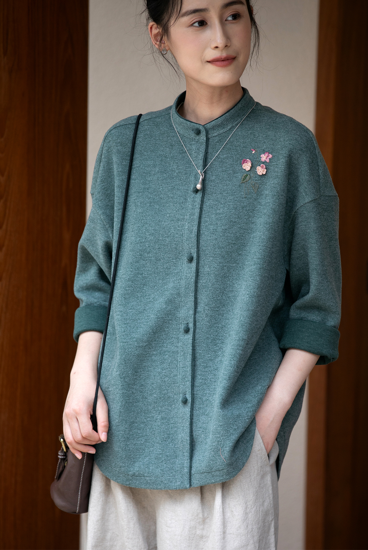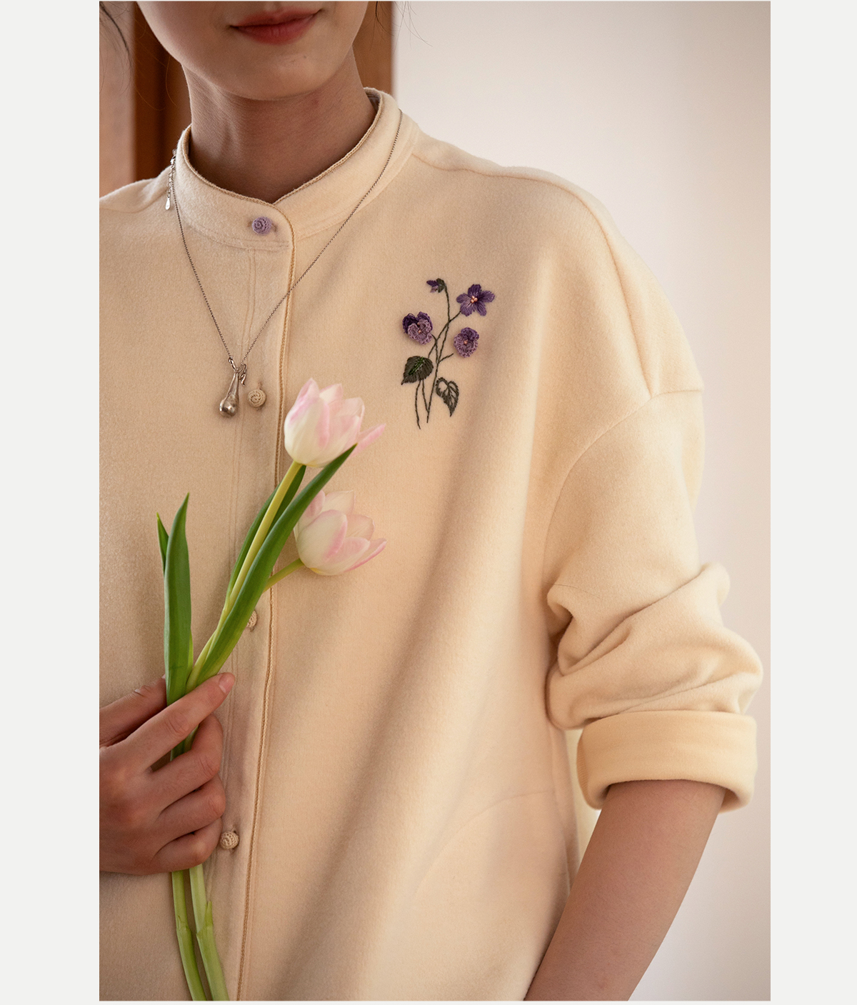 牧衣游原创 手工刺绣绒面棉外套女秋季柔软亲肤宽松百搭开衫 梦丘