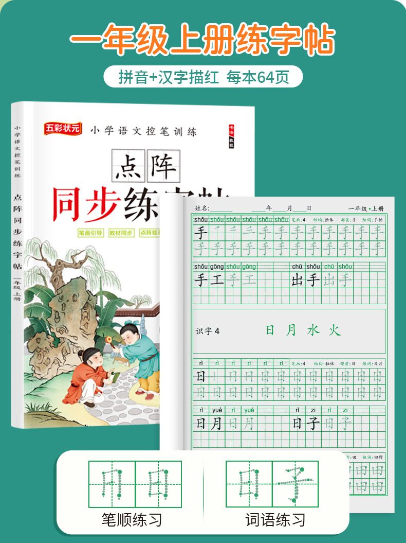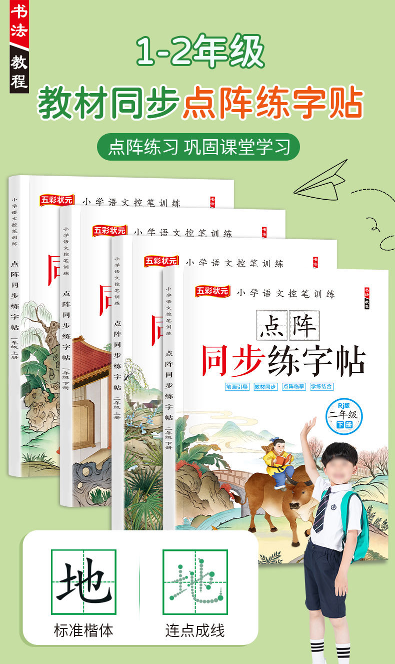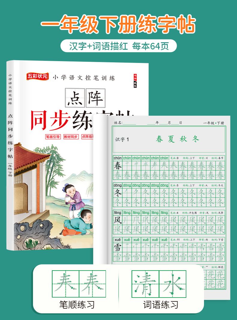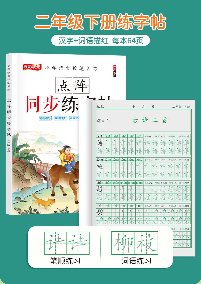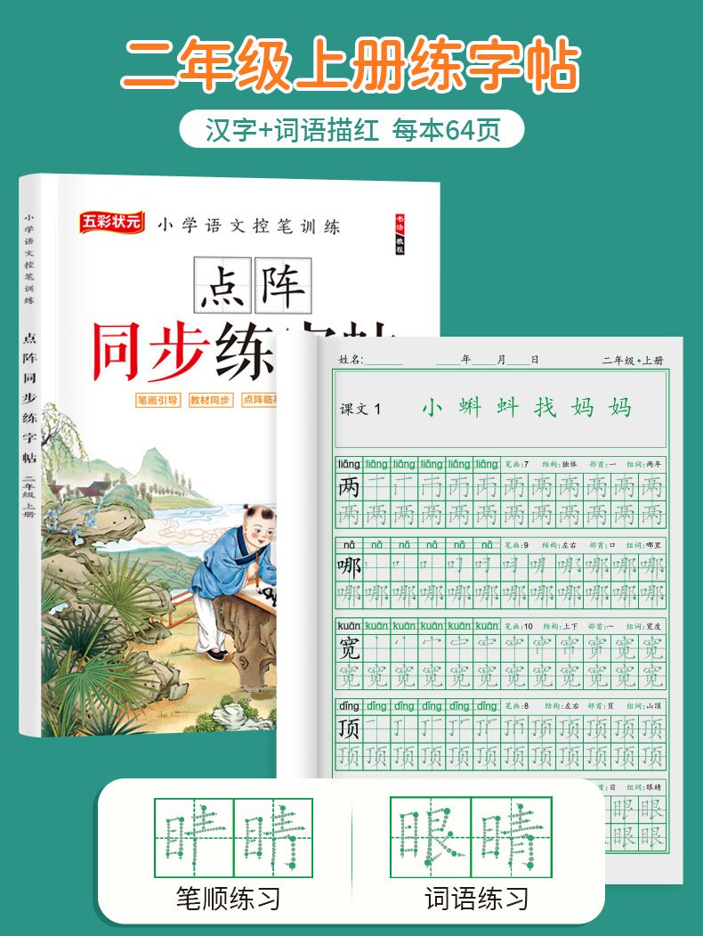点阵同步练字帖一二年级上下册练字帖语文同步小学生点阵控笔描红练字本每日一练