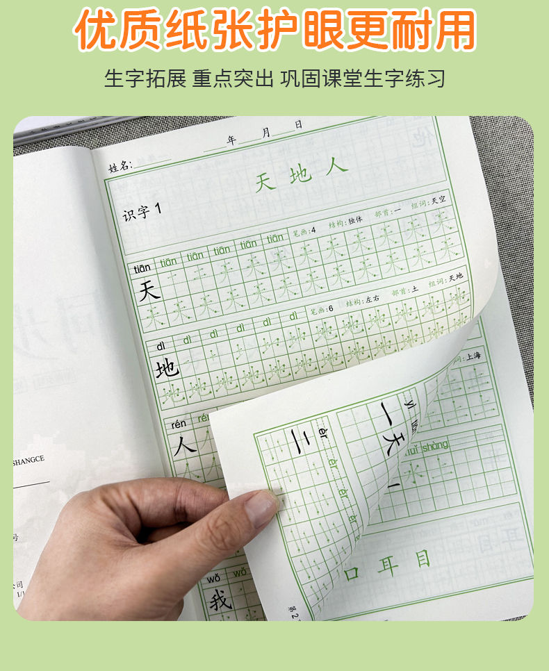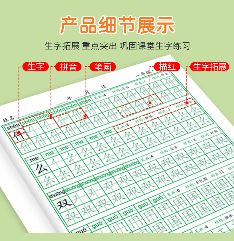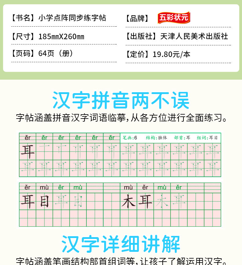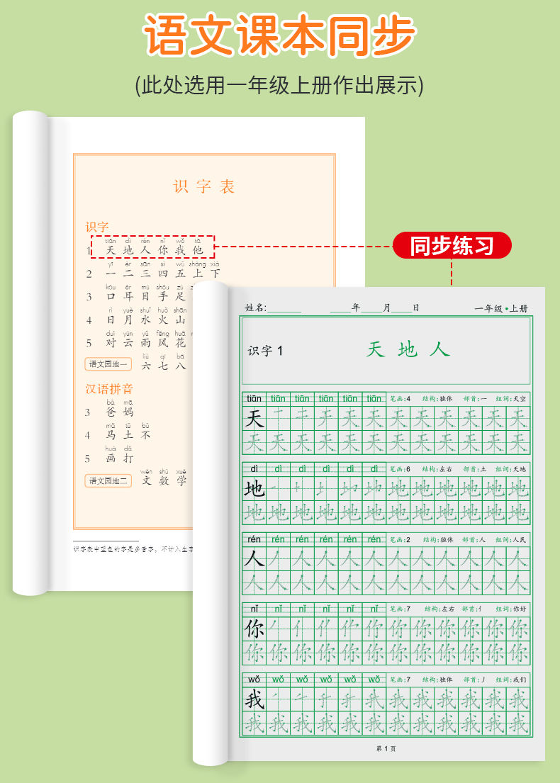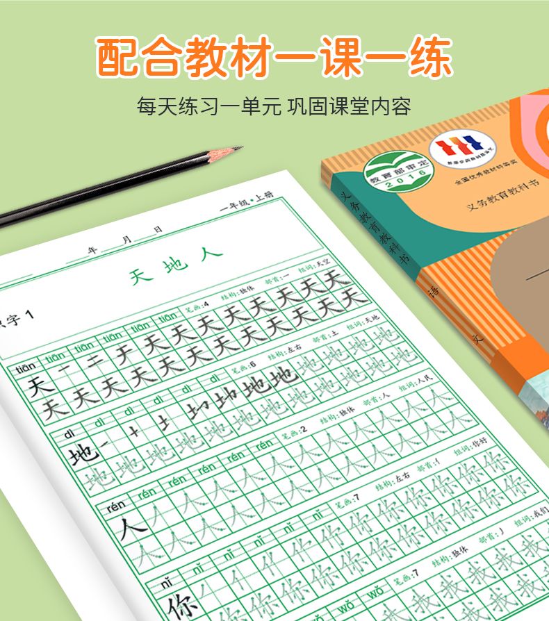 点阵同步练字帖一二年级上下册练字帖语文同步小学生点阵控笔描红练字本每日一练