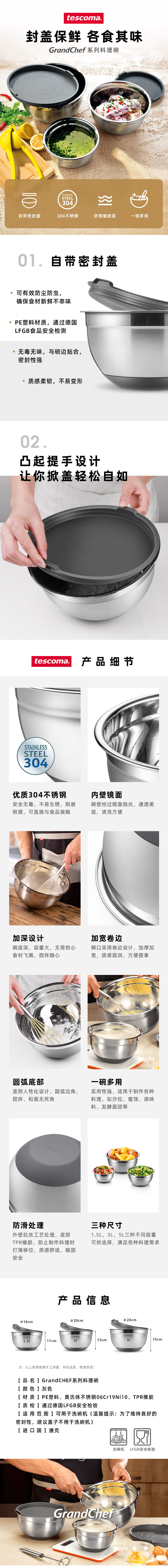 捷克进口/ tescoma GrandCHEF系列料理碗保鲜碗盆16cm
