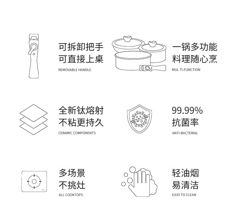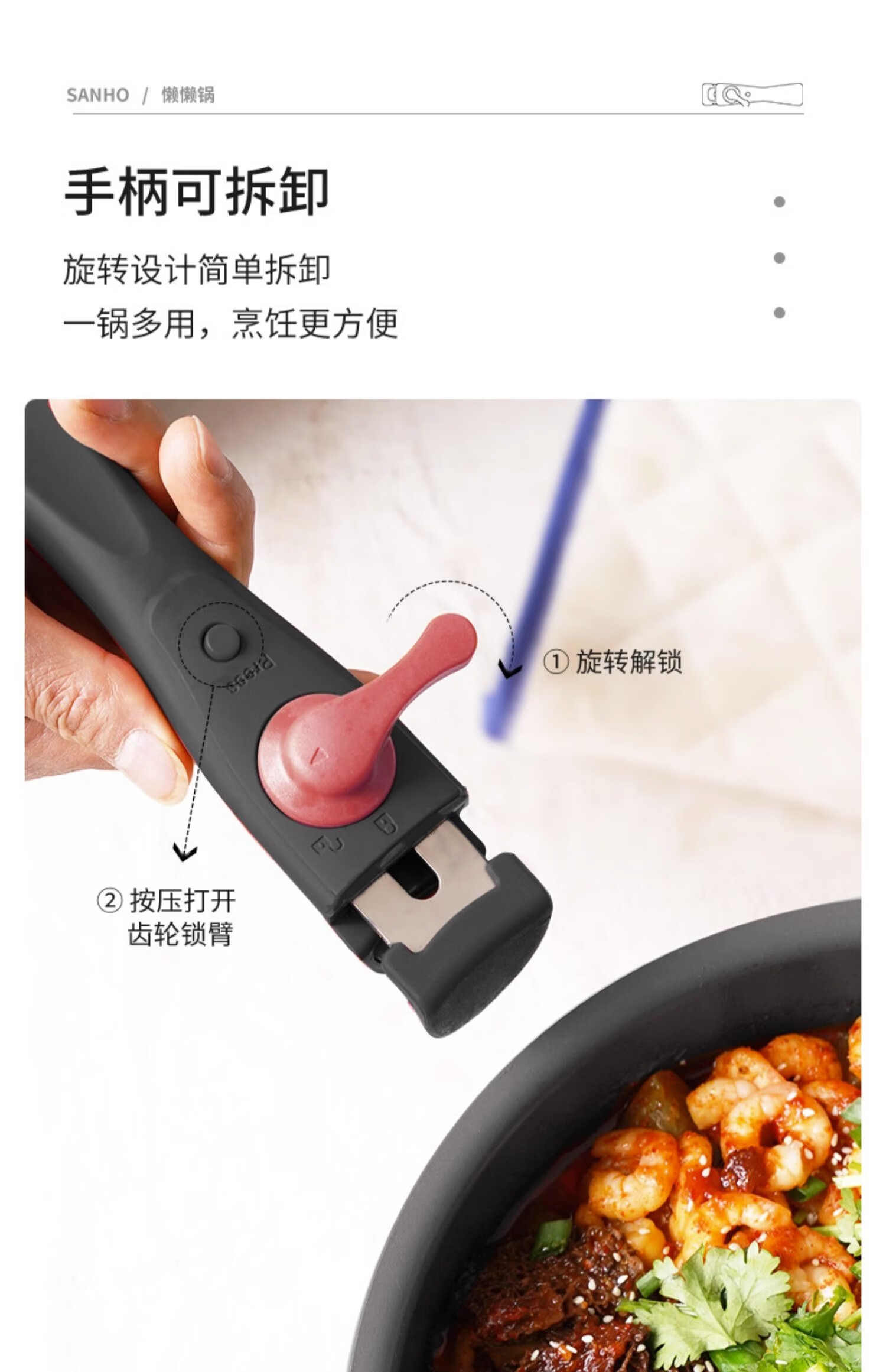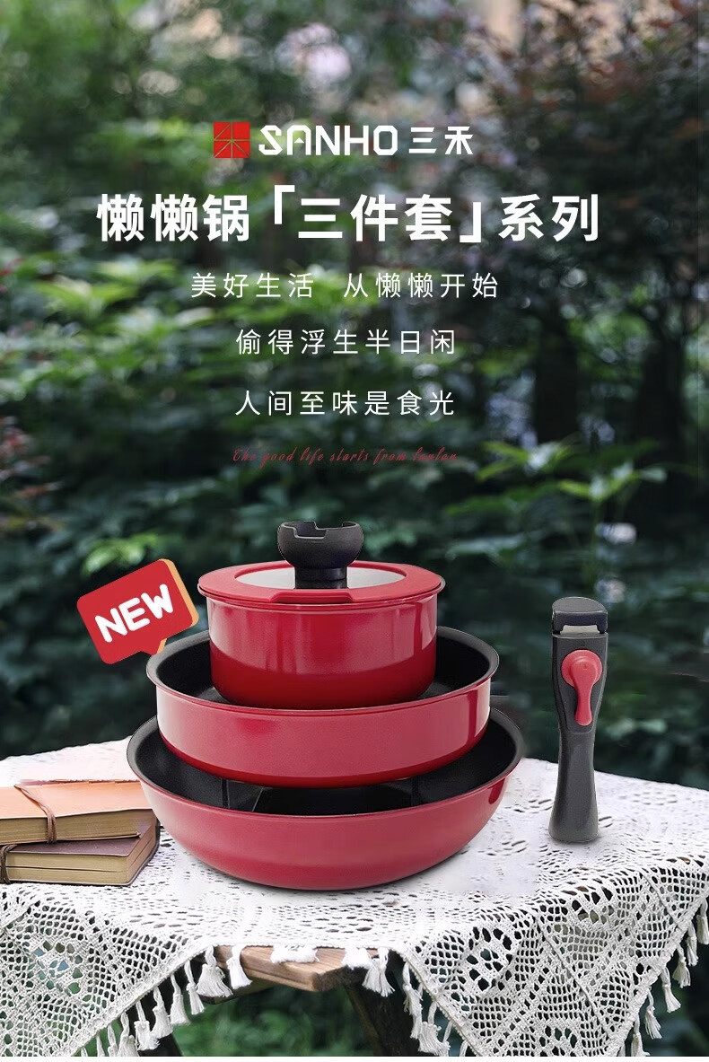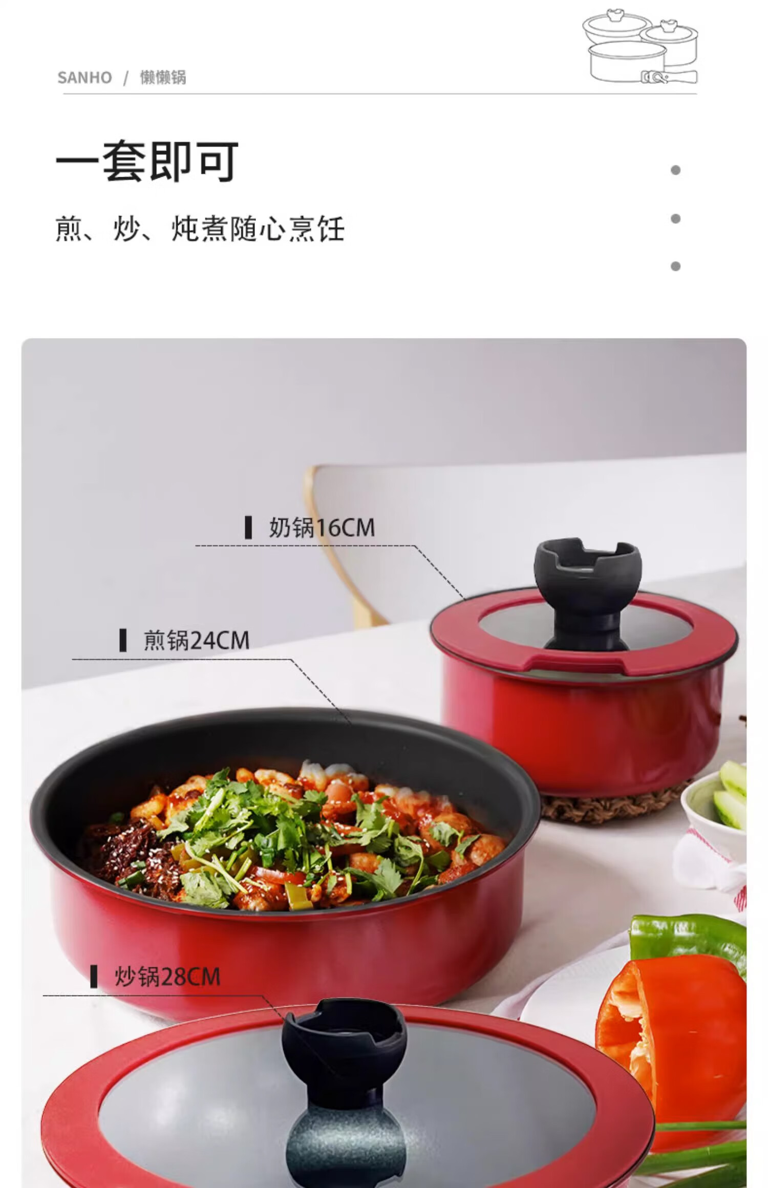 【样品清仓】三禾懒懒锅家用三件套装炒锅煎锅奶锅可拆卸手柄