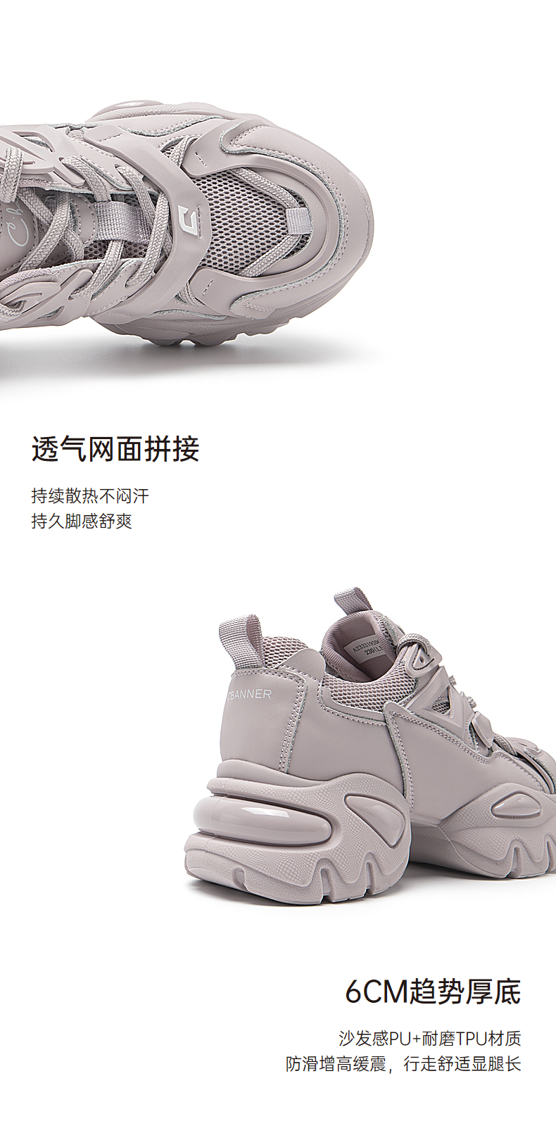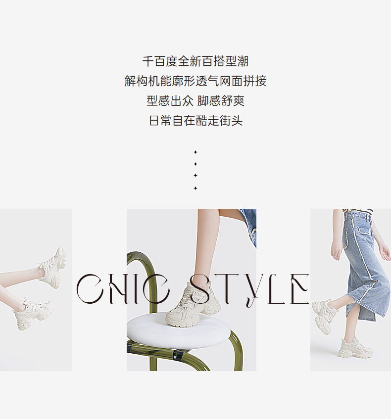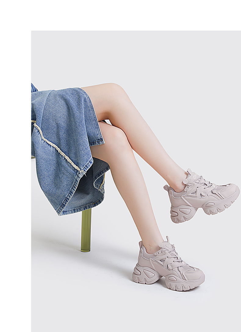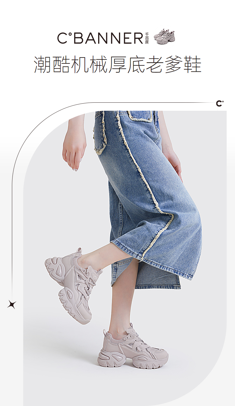 千百度老爹鞋春夏时尚休闲鞋女款厚底增高网面运动鞋潮流 A23331920