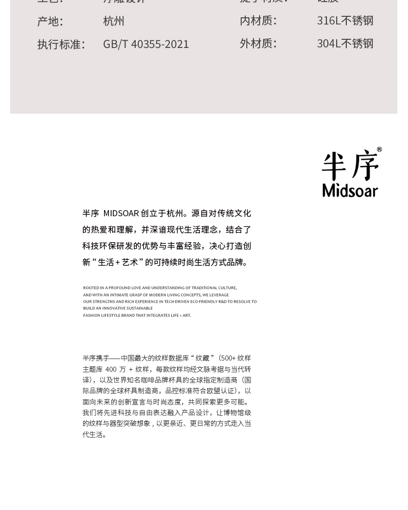 Midsoar半序律动花园系列316L不锈钢小口保温杯女便携保温保冷