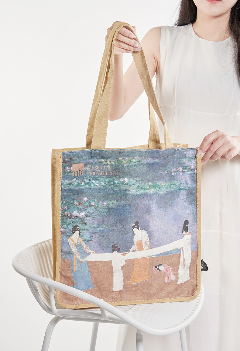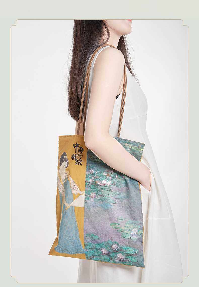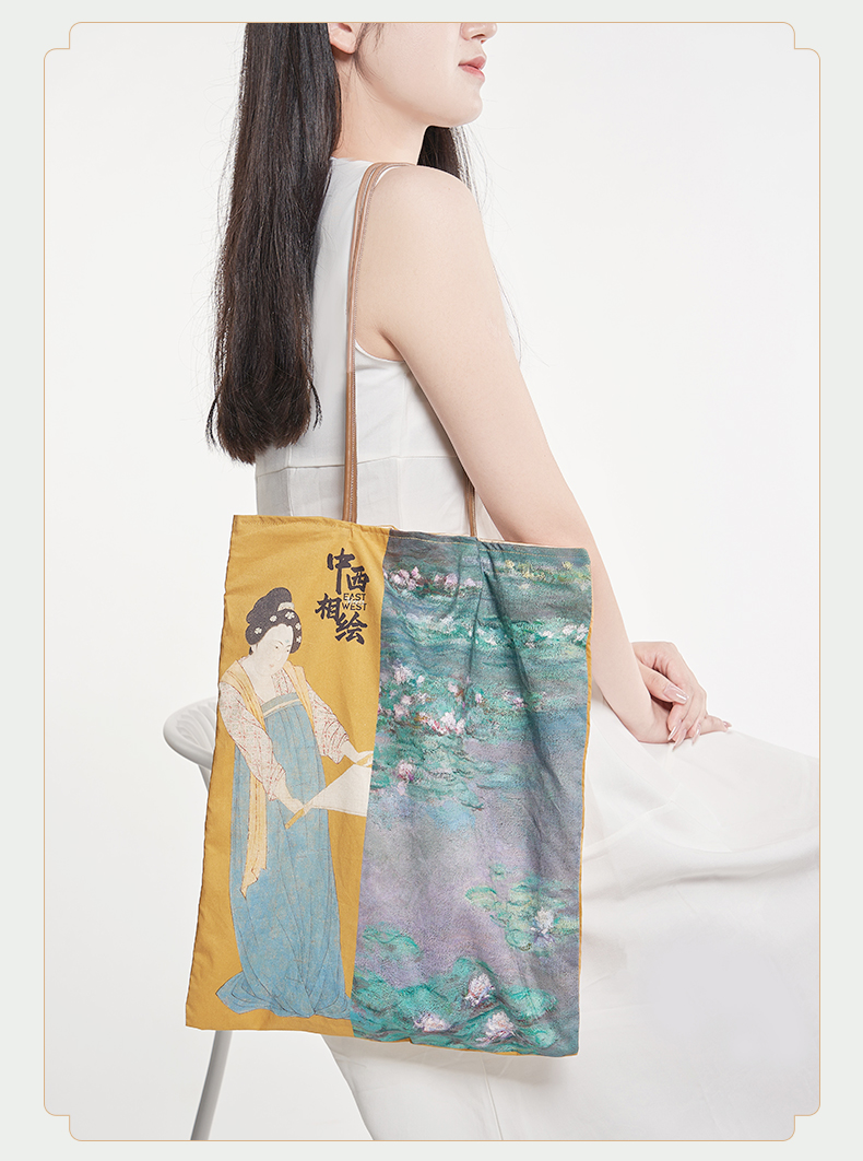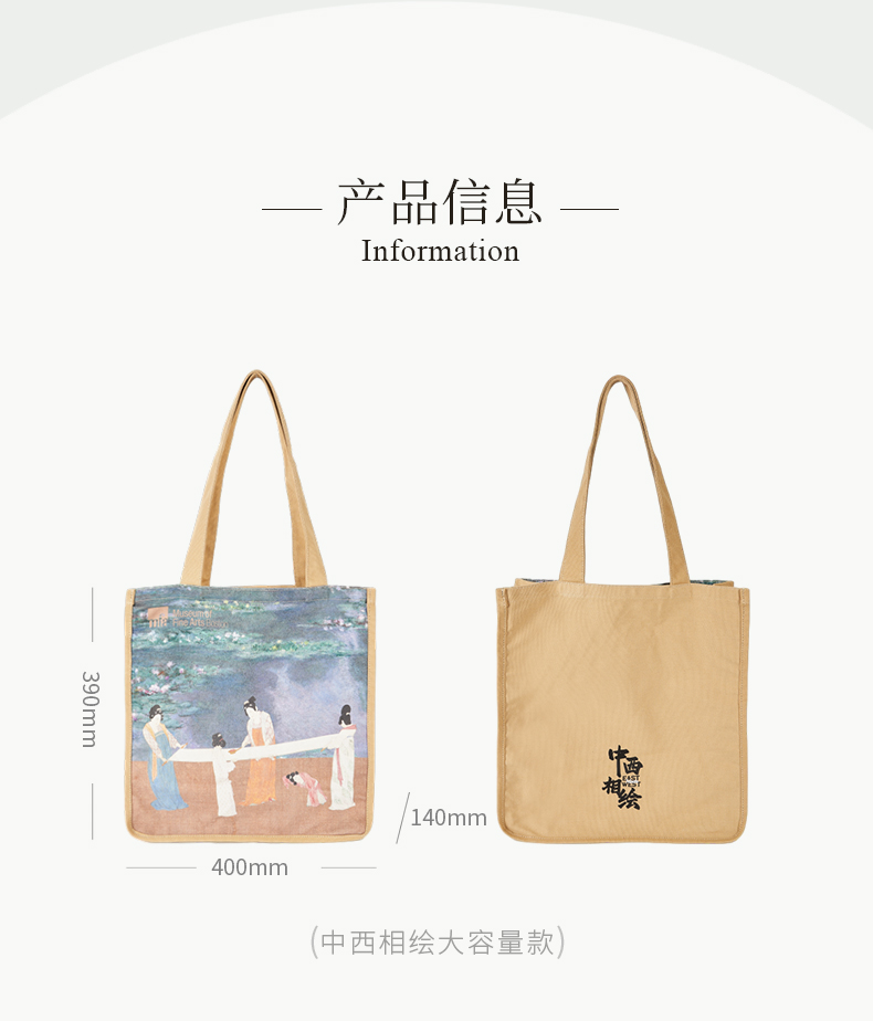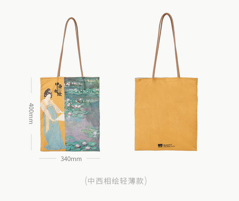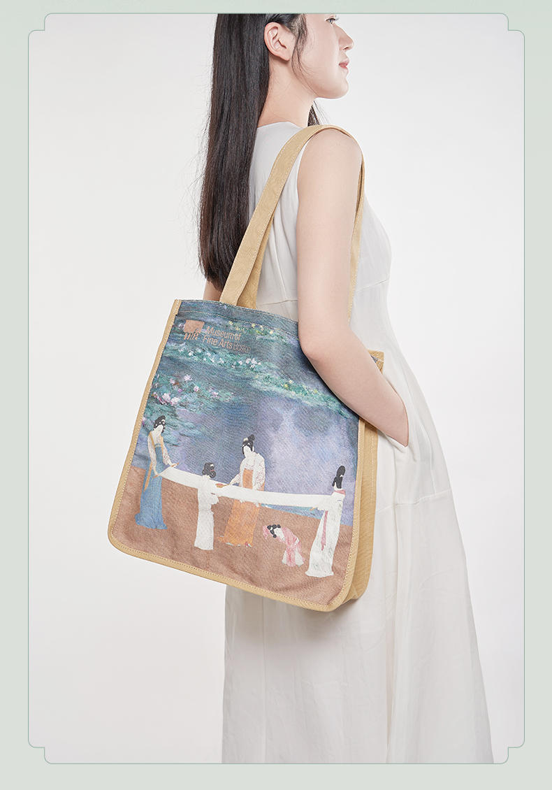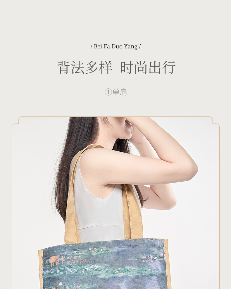 MFA美术博物馆礼遇东西系列 睡莲捣练图大容量帆布包单肩包-驼色 睡莲捣练图帆布包单肩包