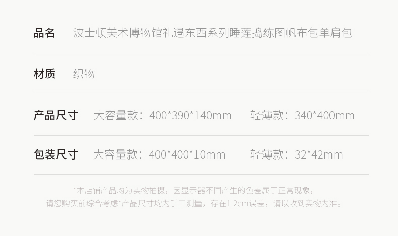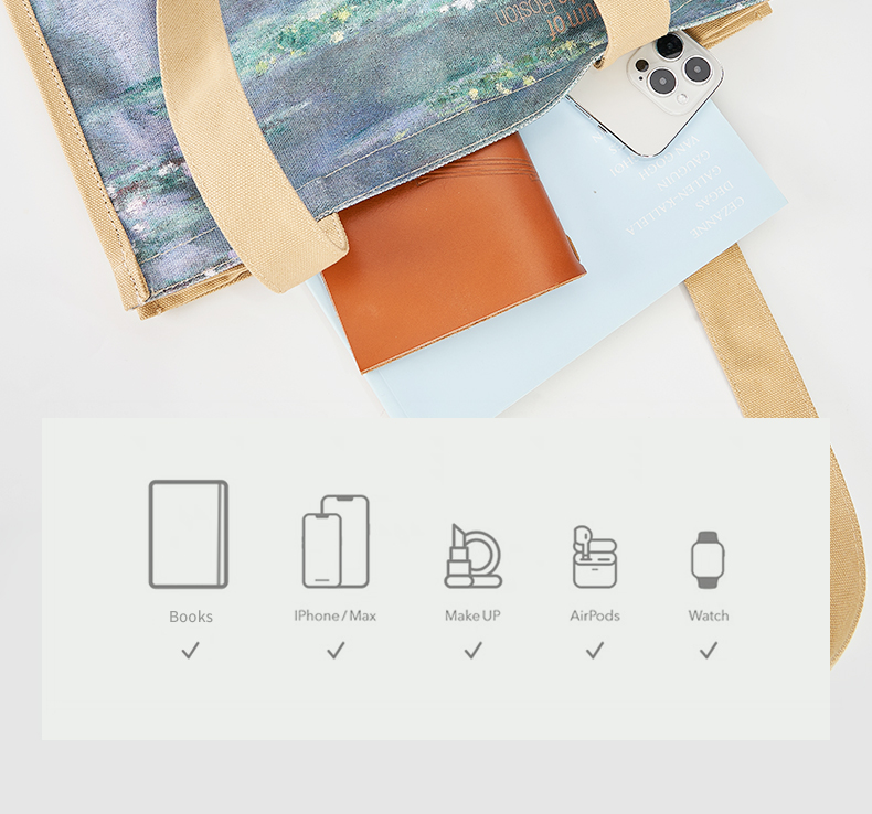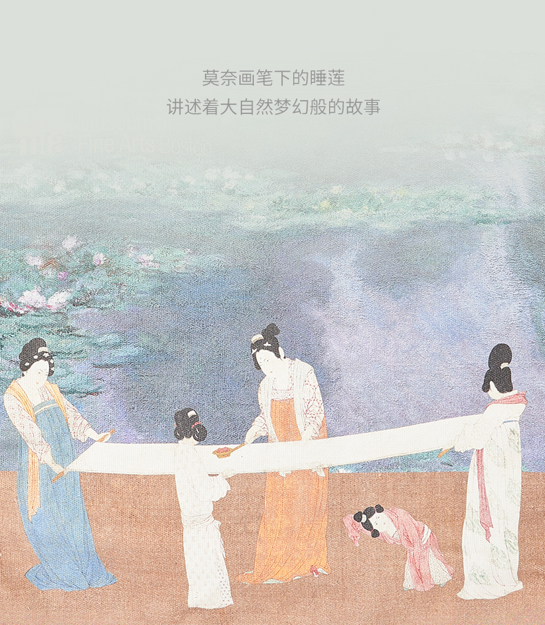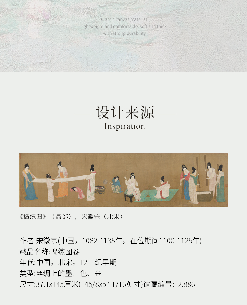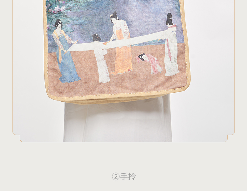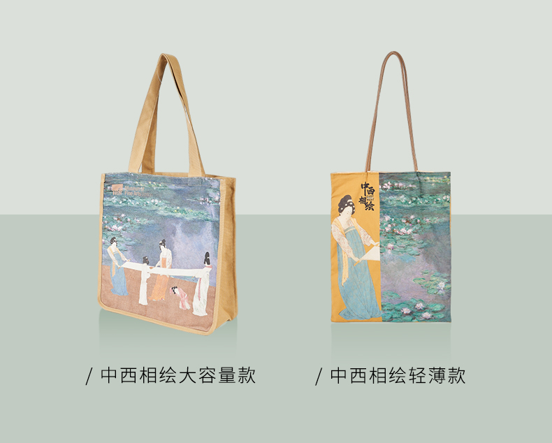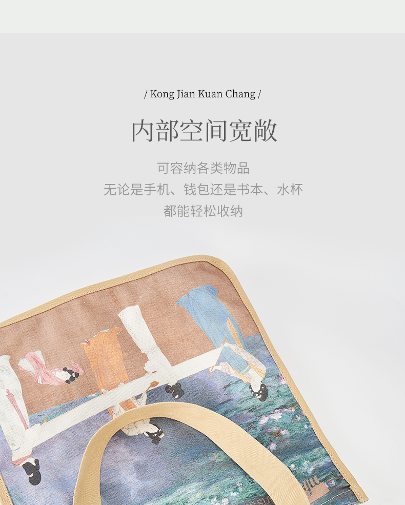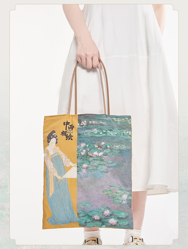 MFA美术博物馆礼遇东西系列 睡莲捣练图大容量帆布包单肩包-驼色 睡莲捣练图帆布包单肩包