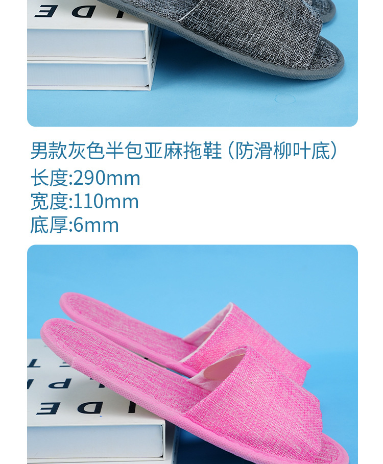 加厚防滑柳叶底棉麻一次性拖鞋酒店民宿居家客人用外穿夏季款半包