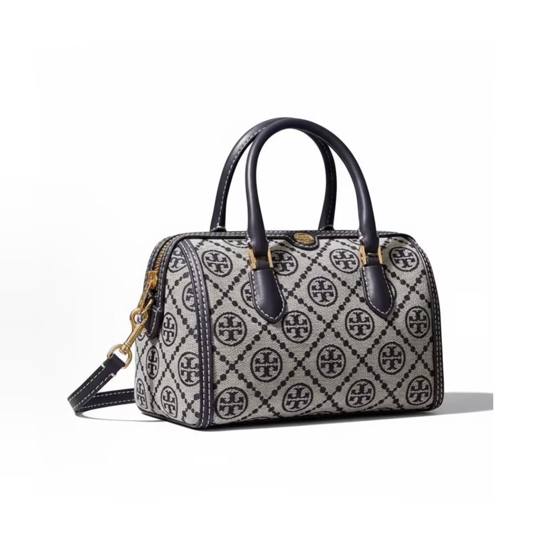TORY BURCH 汤丽柏琦 T MONOGRAM 迷你波士顿酒桶包女包 181284Tory Burch 推出灵感源自传统宾夕法尼亚州绗缝的经典图案,礼赞品牌标志性 Logo:T Monogram 图案。圆桶包选用编织提花布料匠心打造,精巧的包型配以拉链开合,是日常外出的时髦之选。