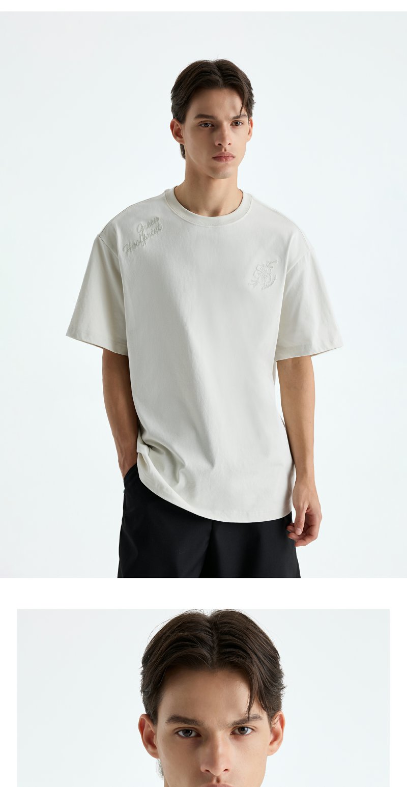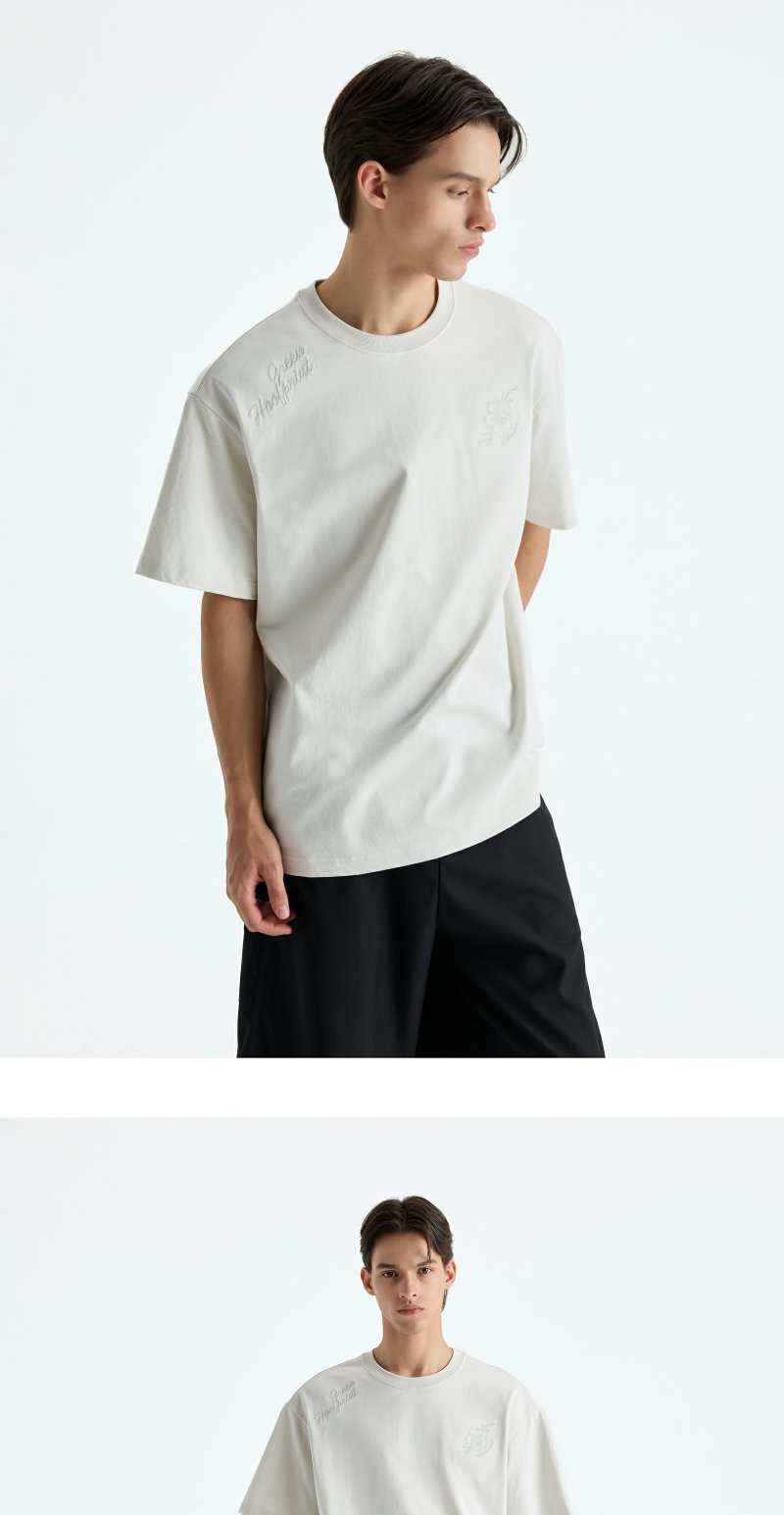 【凉感】CHINISM赤尘 花卉刺绣短袖T恤男2025夏季男士速干半袖