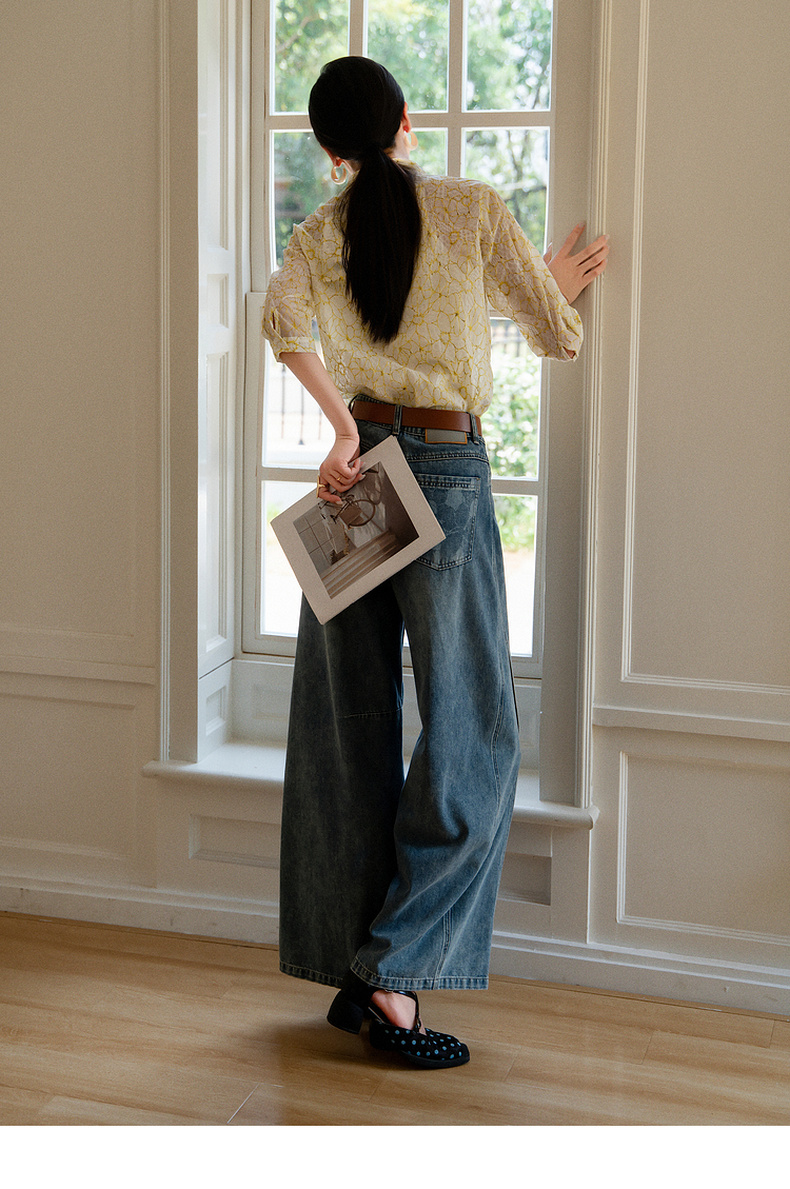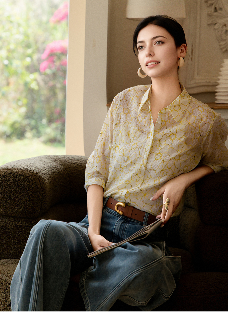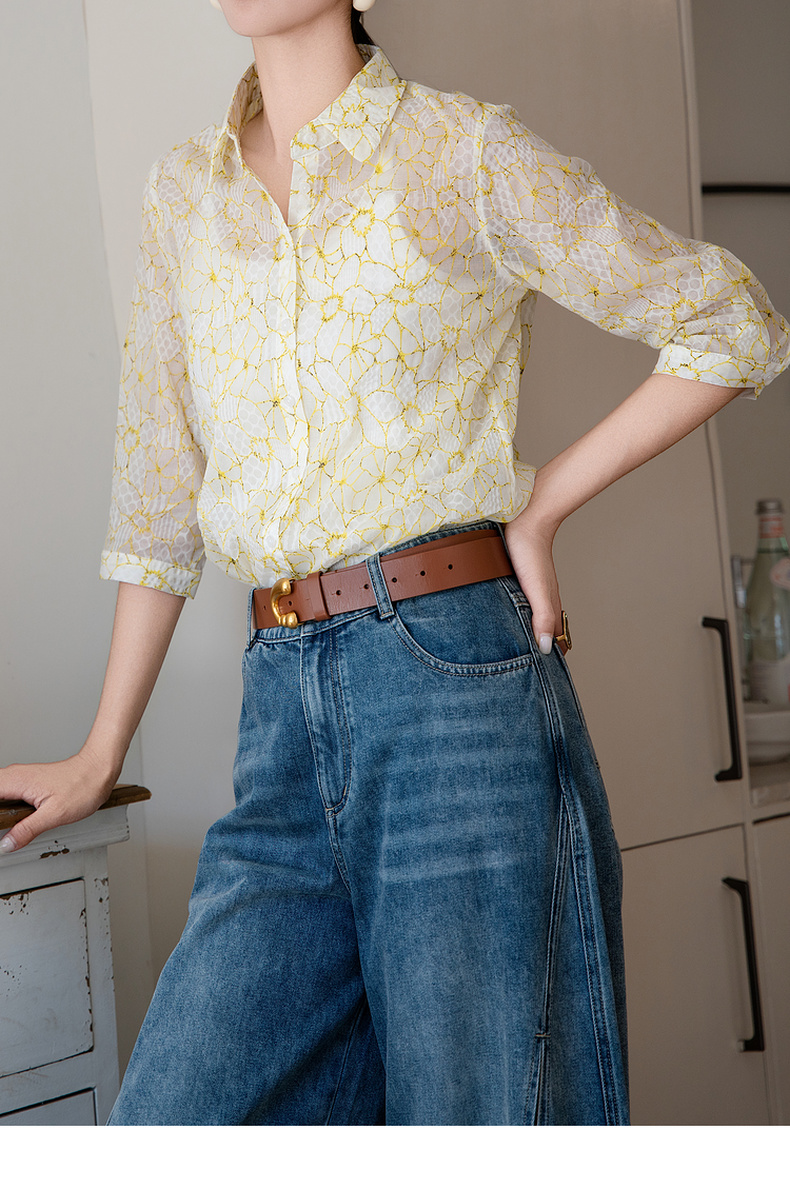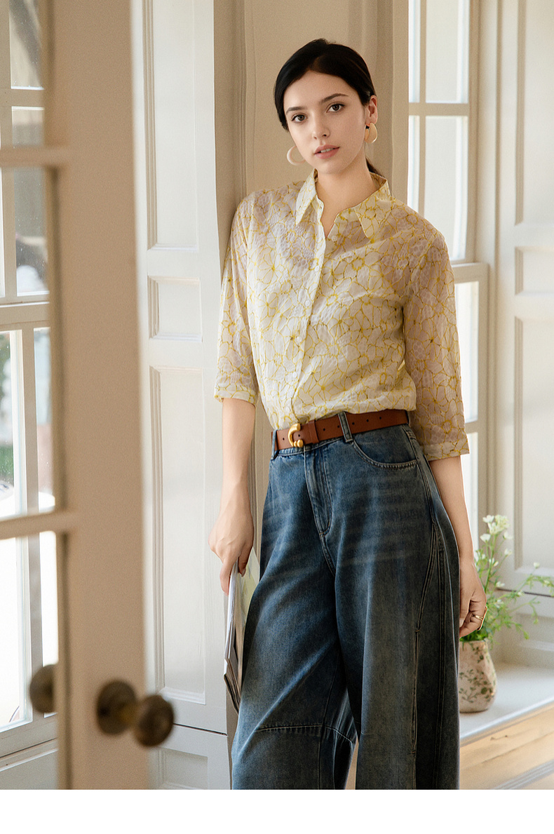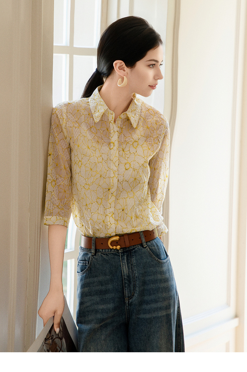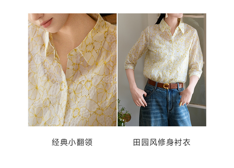 谜底小黄花衬衫七分袖女2025夏新款小清新度假合体衬衣256MC6281