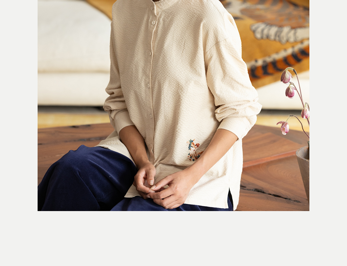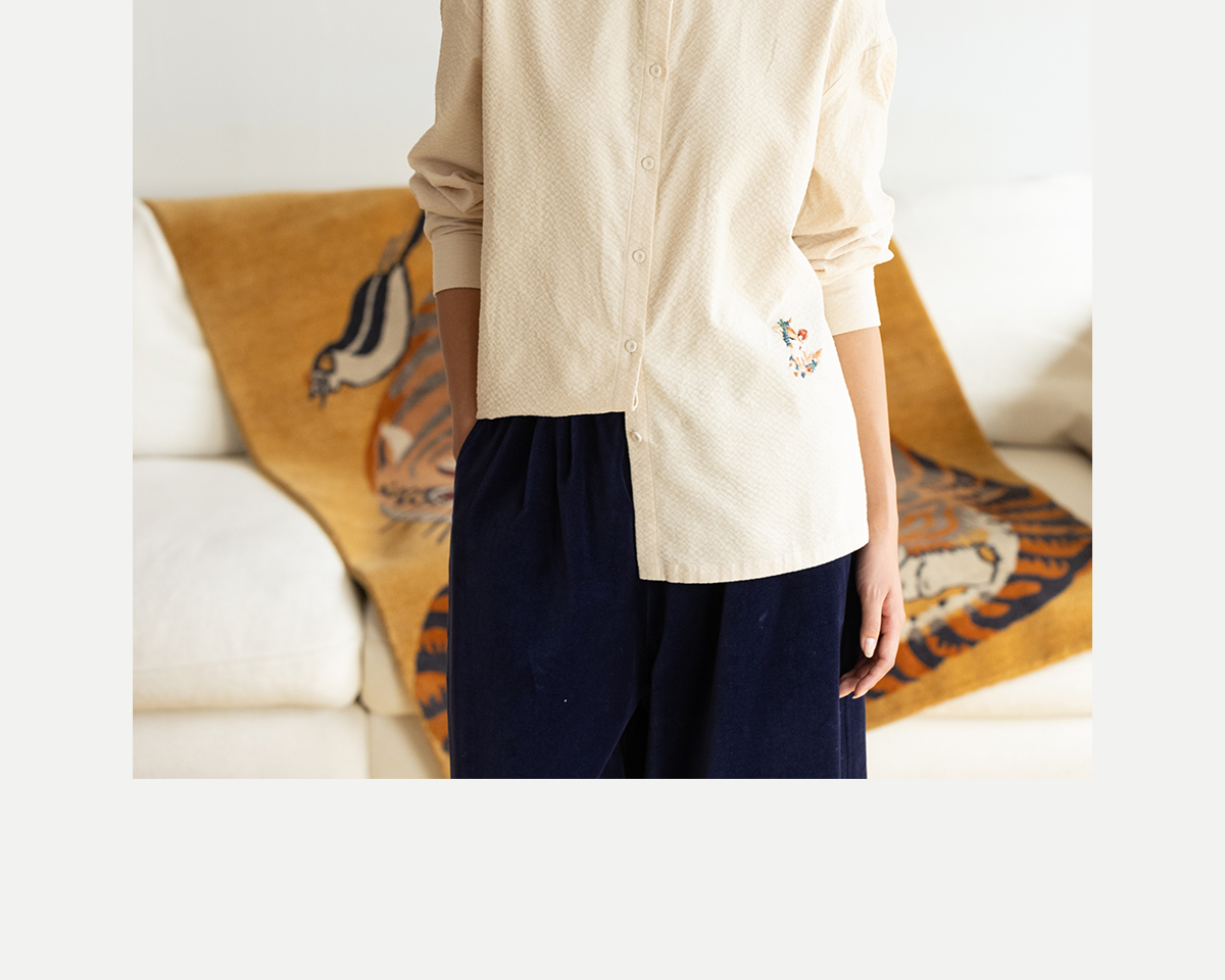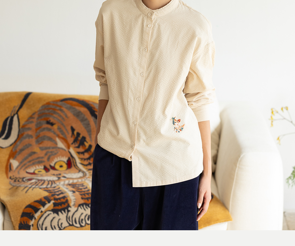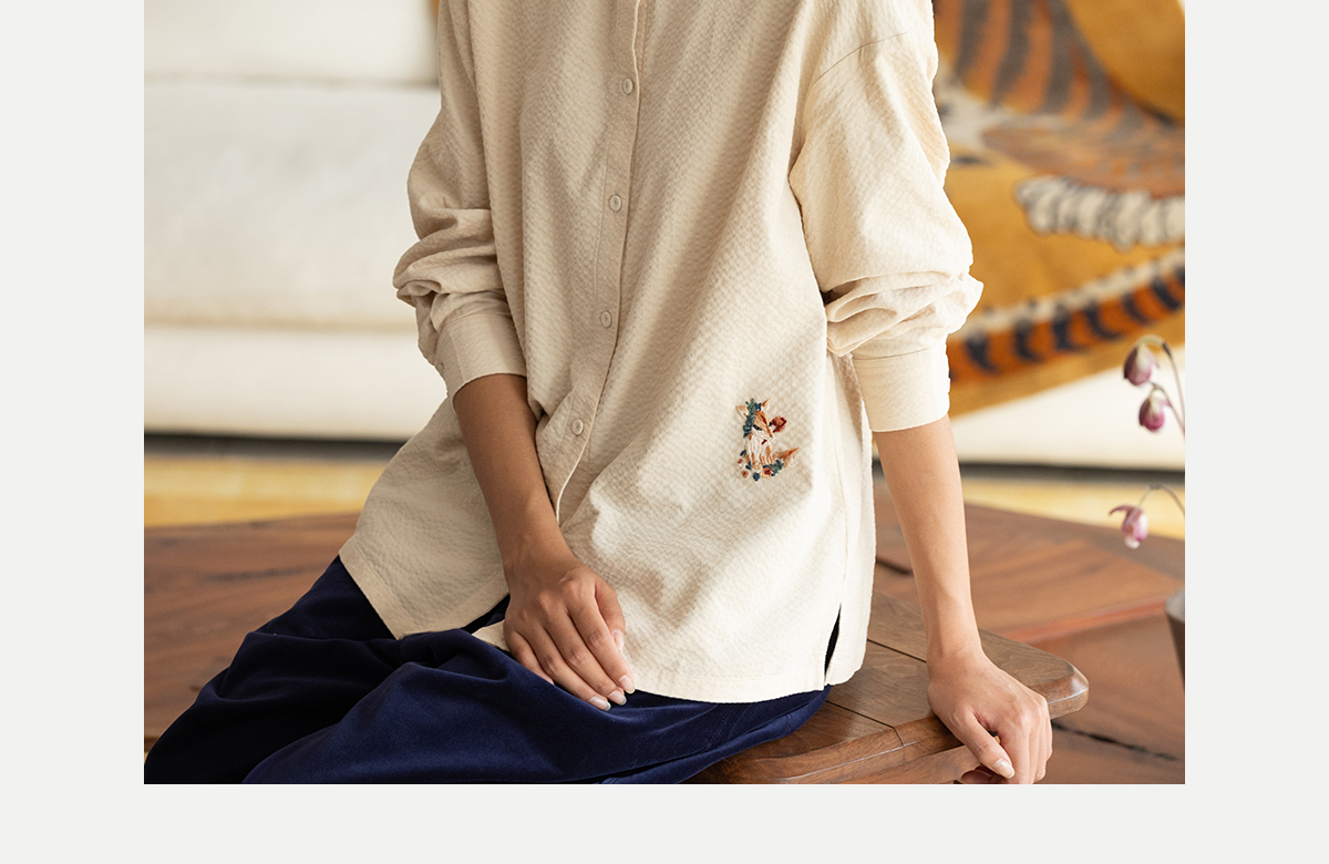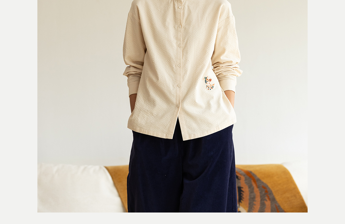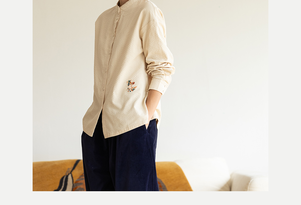 牧衣游原创 手工刺绣灯芯绒衬衫女新款简约质朴文艺衬衣 兰亭入画
