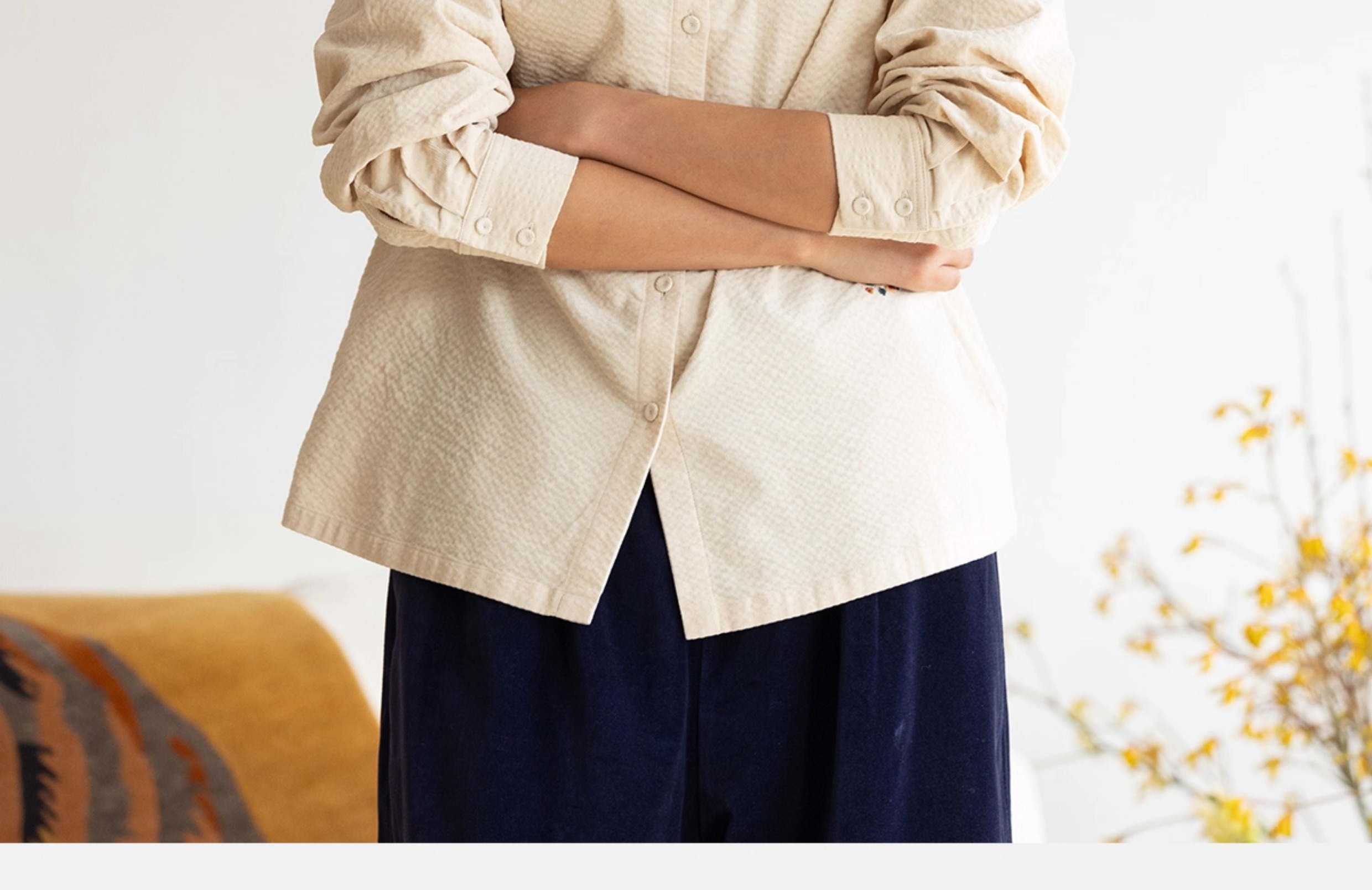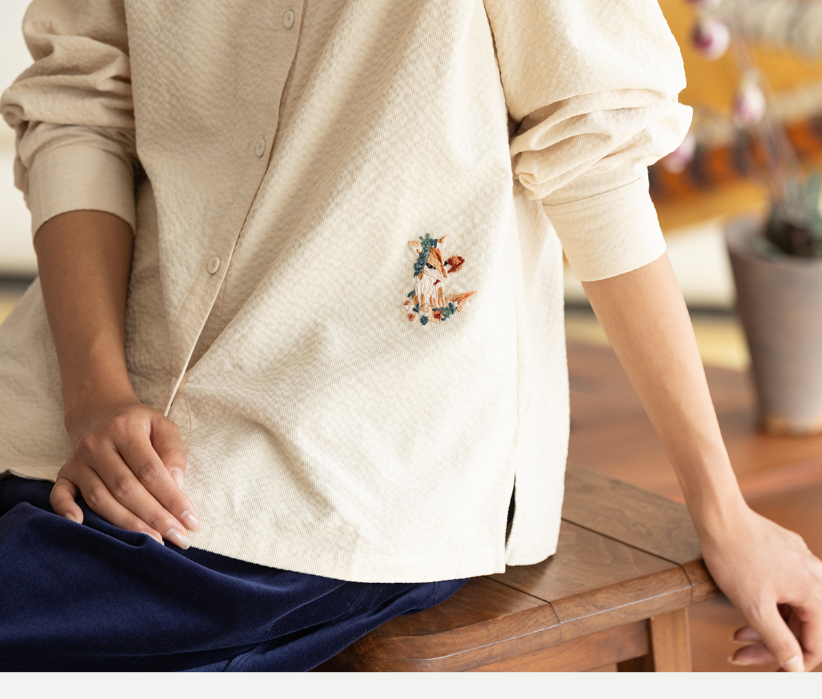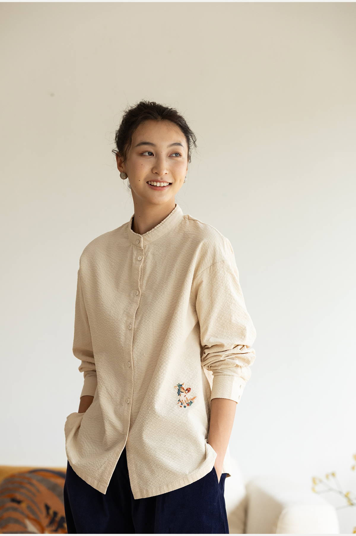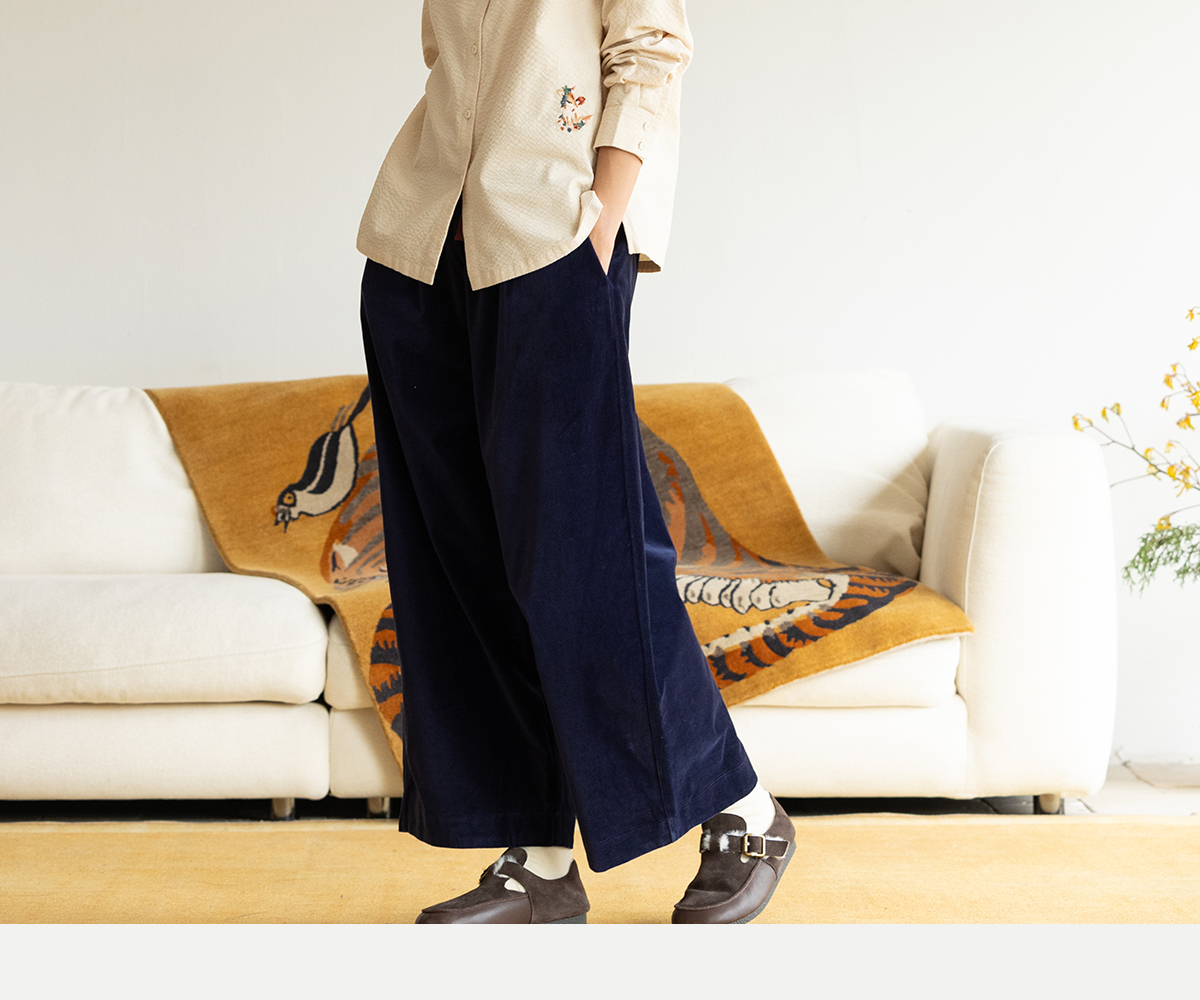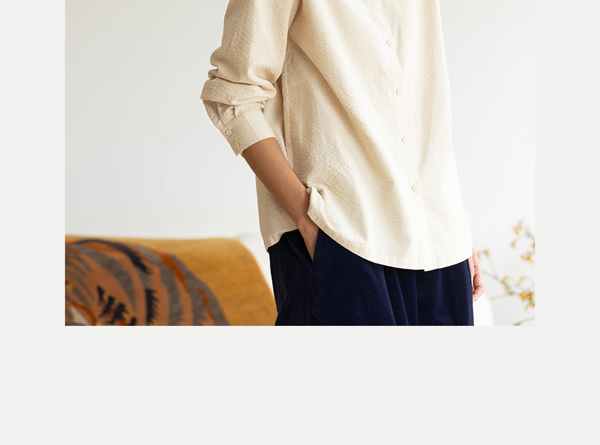 牧衣游原创 手工刺绣灯芯绒衬衫女新款简约质朴文艺衬衣 兰亭入画