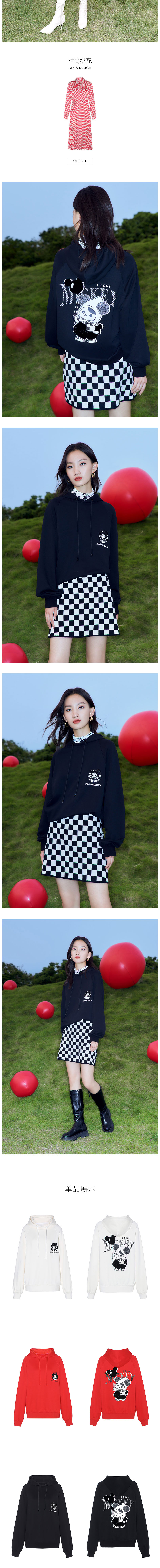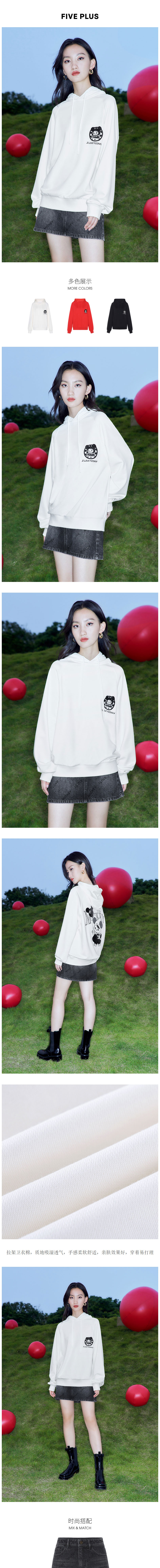 FIVE PLUS2022新款女春装泡泡玛特联名卫衣女宽松米奇连帽套头衫2WN1020050