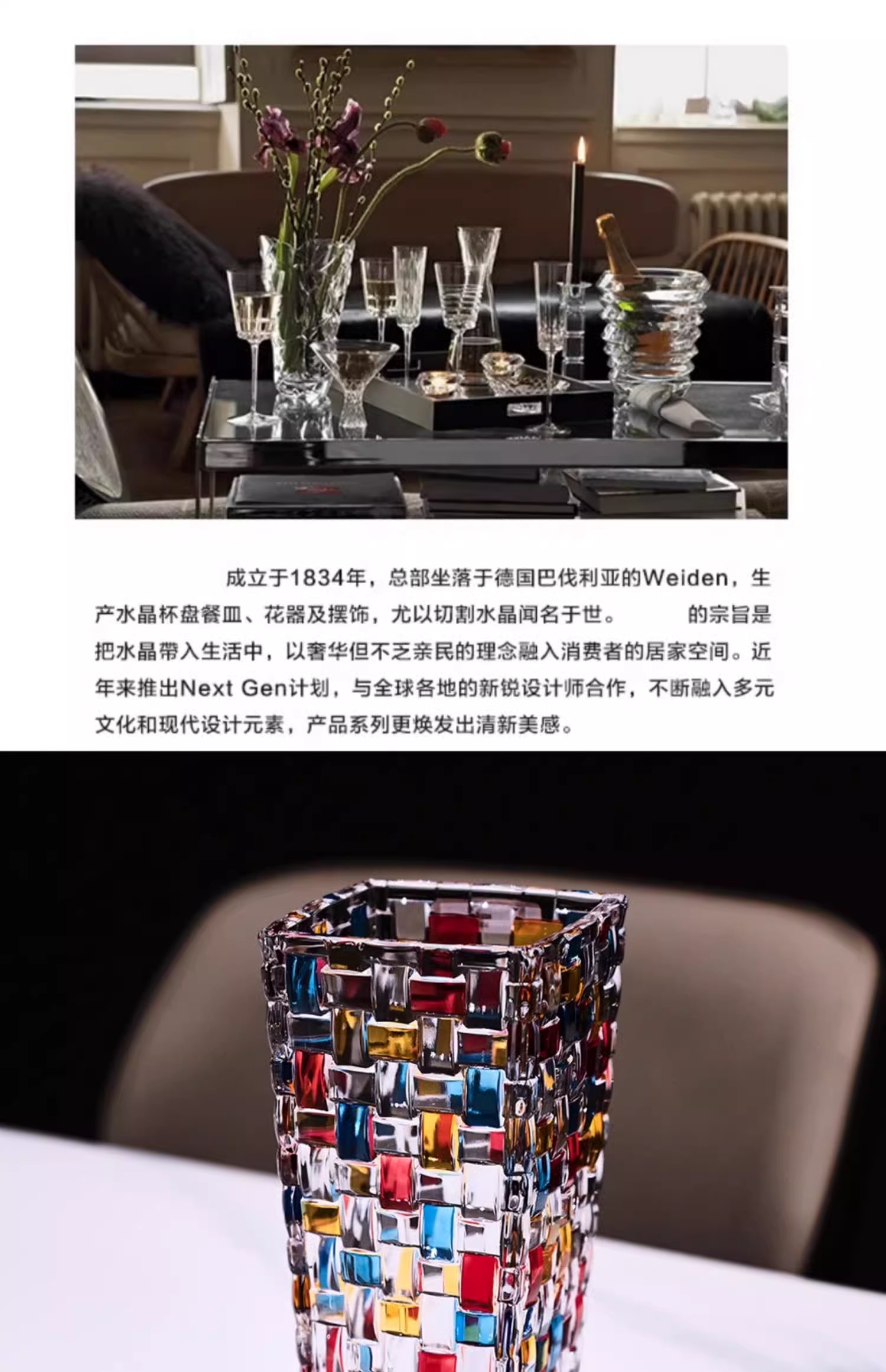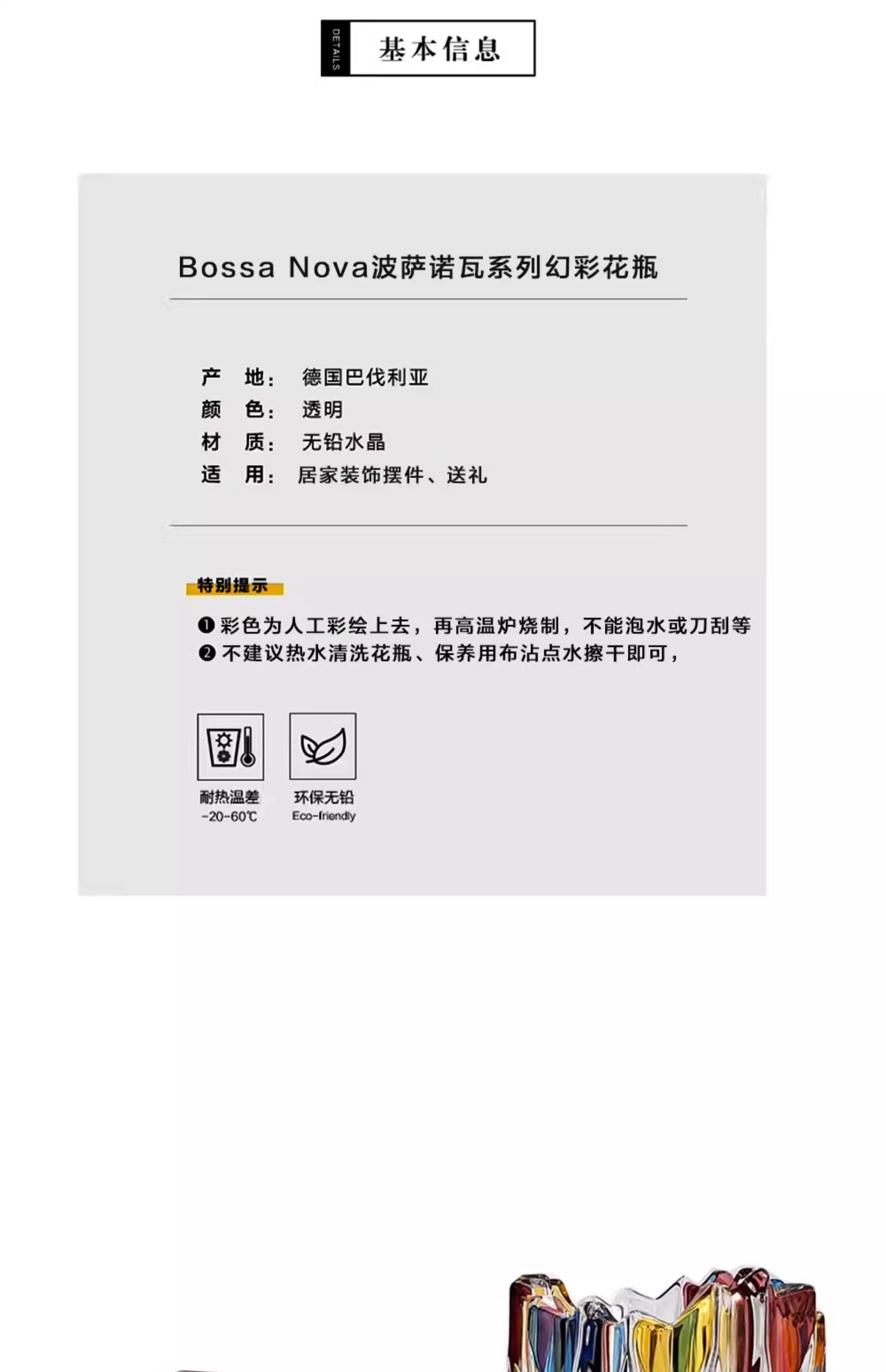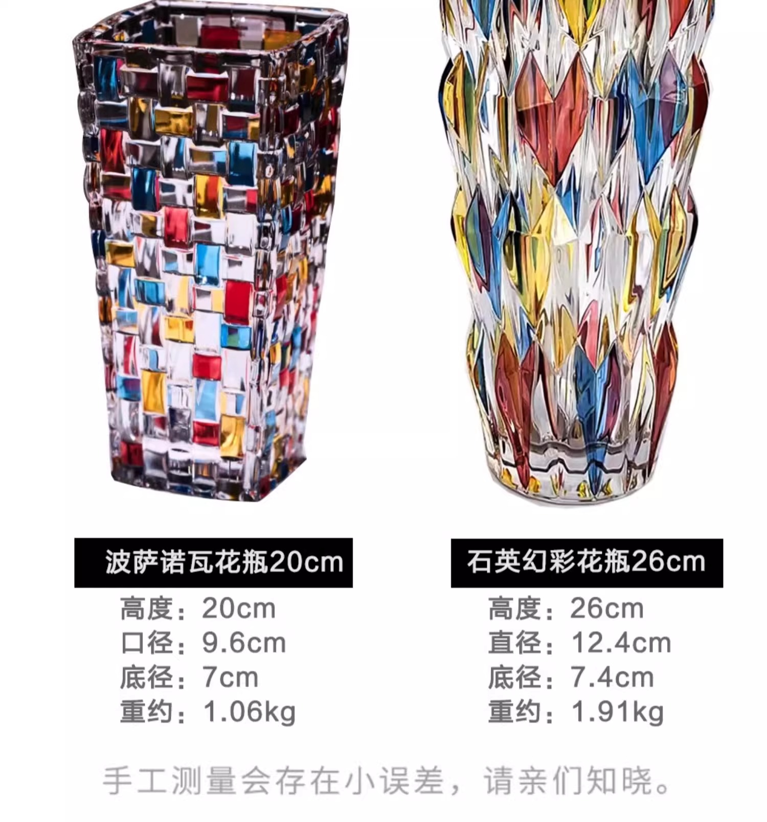 捷克进口BOHEMIA 波西米亚水晶玻璃花瓶轻奢高端北欧简约透明客厅花器摆件波萨诺瓦彩色花瓶20cm