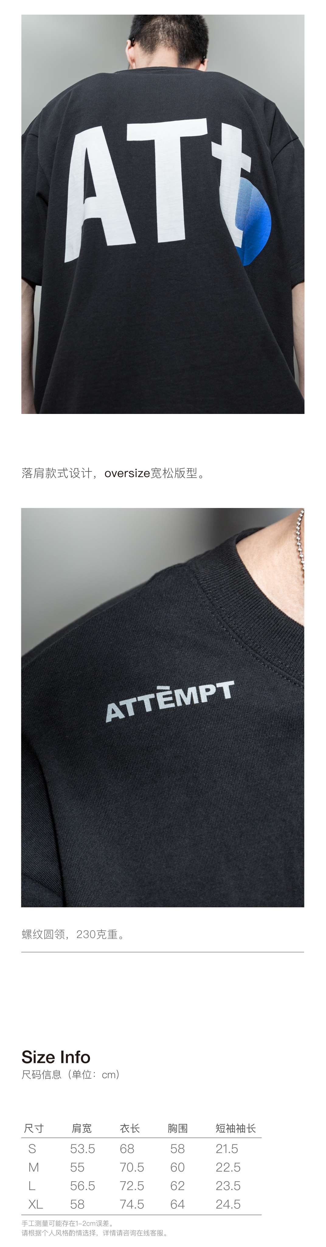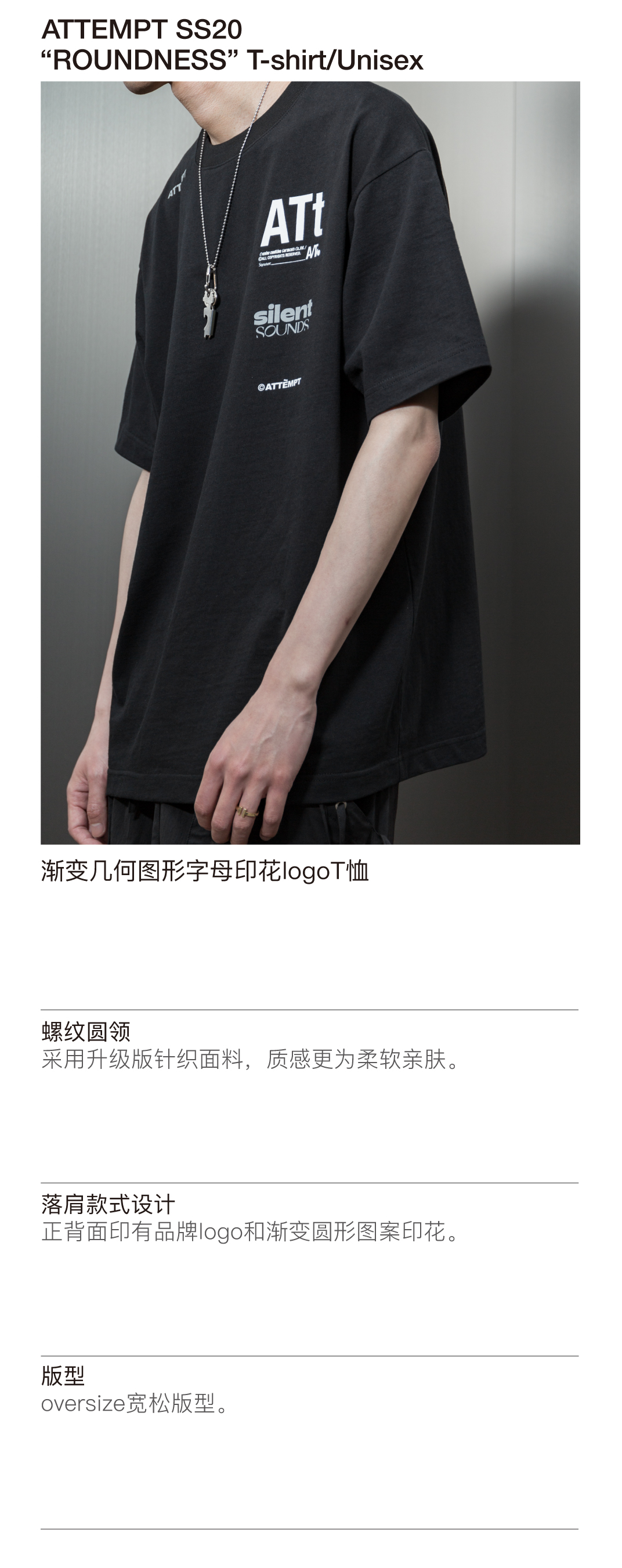 ATTEMPT 定番产品 "ATt" LOGO Tee 渐变几何印花宽松落肩短袖T恤